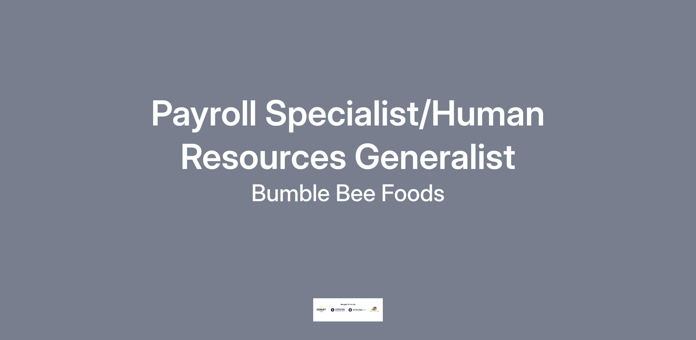 The HR Generalist at Bumble Bee Foods serves as the primary payroll administrator while supporting a broad range of human resource functions across the employee lifecycle. This role is responsible for managing accurate and timely payroll processing, supporting HR coordination, executing month-end and year-end reporting, and maintaining HR compliance. In addition, this role will assist in full-cycle recruitment efforts and onboarding, including coordinating new hire announcements and supporting employer branding efforts in collaboration with cross-functional teams. The ideal candidate is highly organized, detail-oriented, and thrives in both independent and collaborative environments. This is a hands-on position that plays a critical role in both day-to-day operations and longer-term HR initiatives.