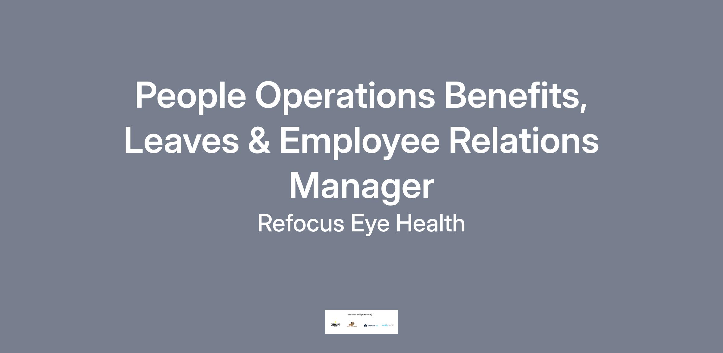 The People Operations Manager – Benefits, Leaves & Employee Relations manager is a highly skilled HR professional responsible for managing ReFocus’s multi-state benefits programs, complex leave administration, and employee relations support in CT and RI.