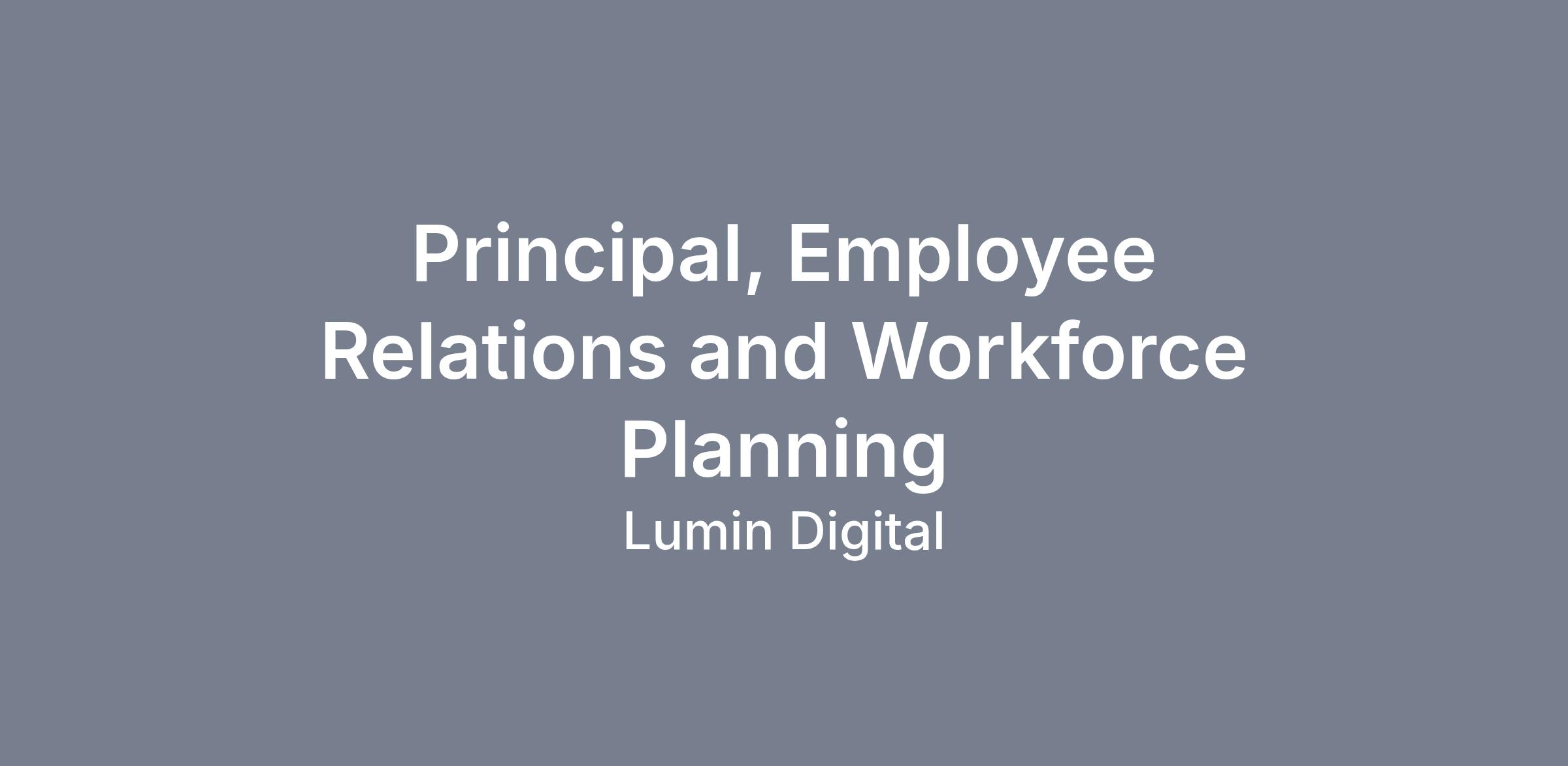 The Principal, Employee Relations and Workforce Planning serves as Lumin Digital's senior practitioner at the intersection of people risk, organizational effectiveness, and talent strategy. This role is the company's primary SME on employee relations — building the frameworks, practices, and compliance infrastructure that protect employees and the organization across a 35+ state footprint, while simultaneously driving the workforce planning and organizational design work that prepares Lumin for sustainable, AI-informed growth. As a direct partner to the Chief Talent Officer and senior leadership, this role operates as a senior individual contributor at both the strategic and functional level, translating business transformation priorities into people and organizational capability.