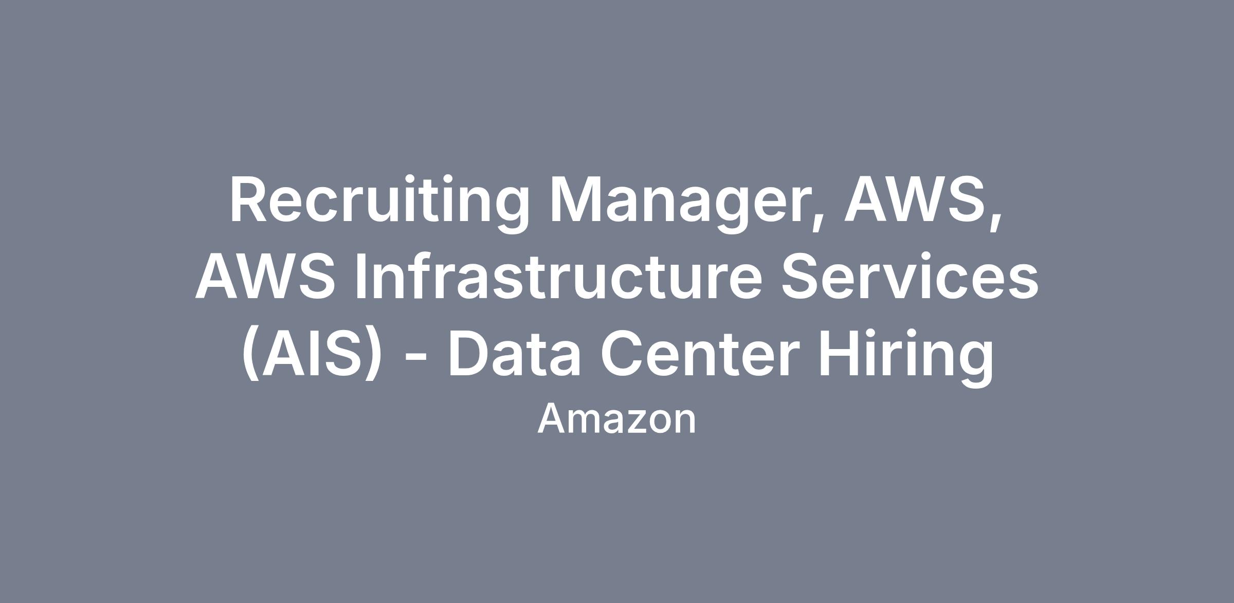 AWS Infrastructure Services owns the design, planning, delivery, and operation of all AWS global infrastructure. We support all AWS data centers and the servers, storage, networking, power, and cooling equipment that ensure customers have continual access to innovation. We are seeking an experienced Recruiting Manager to lead high-volume hiring efforts for our rapidly expanding data center operations.