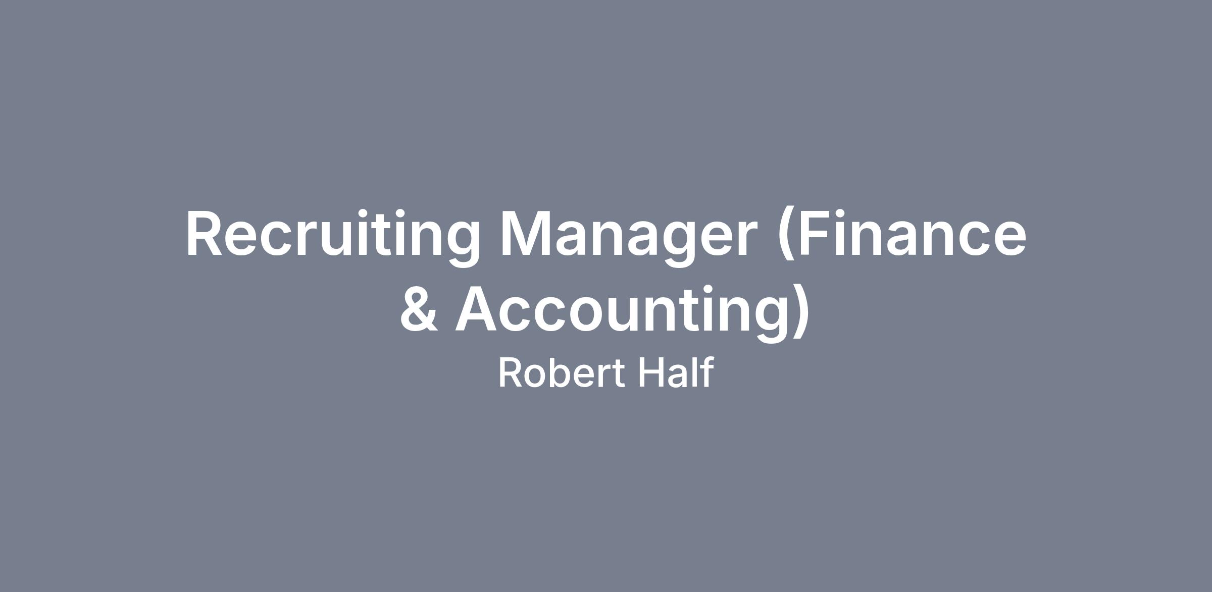 Recruiting Manager (Finance & Accounting)LOCATION