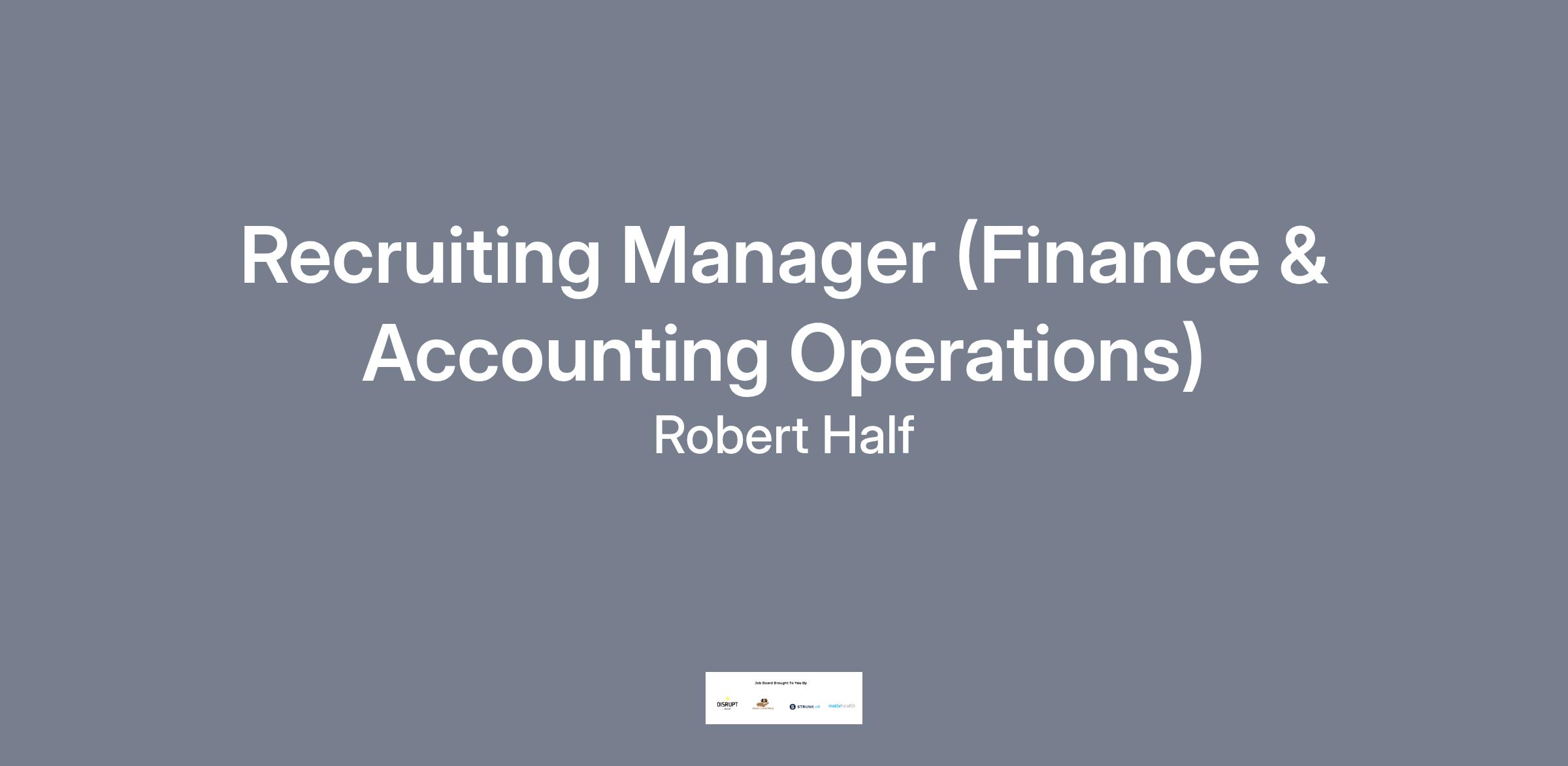 Recruiting Manager (Finance & Accounting Operations)LOCATION