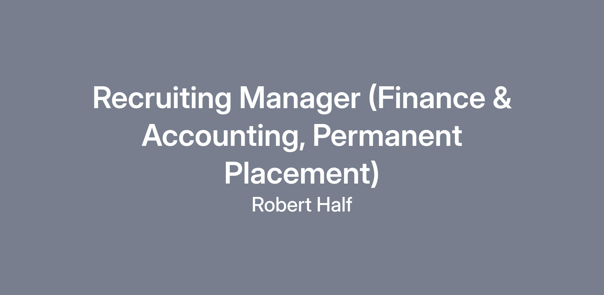 Recruiting Manager (Finance & Accounting, Permanent Placement)