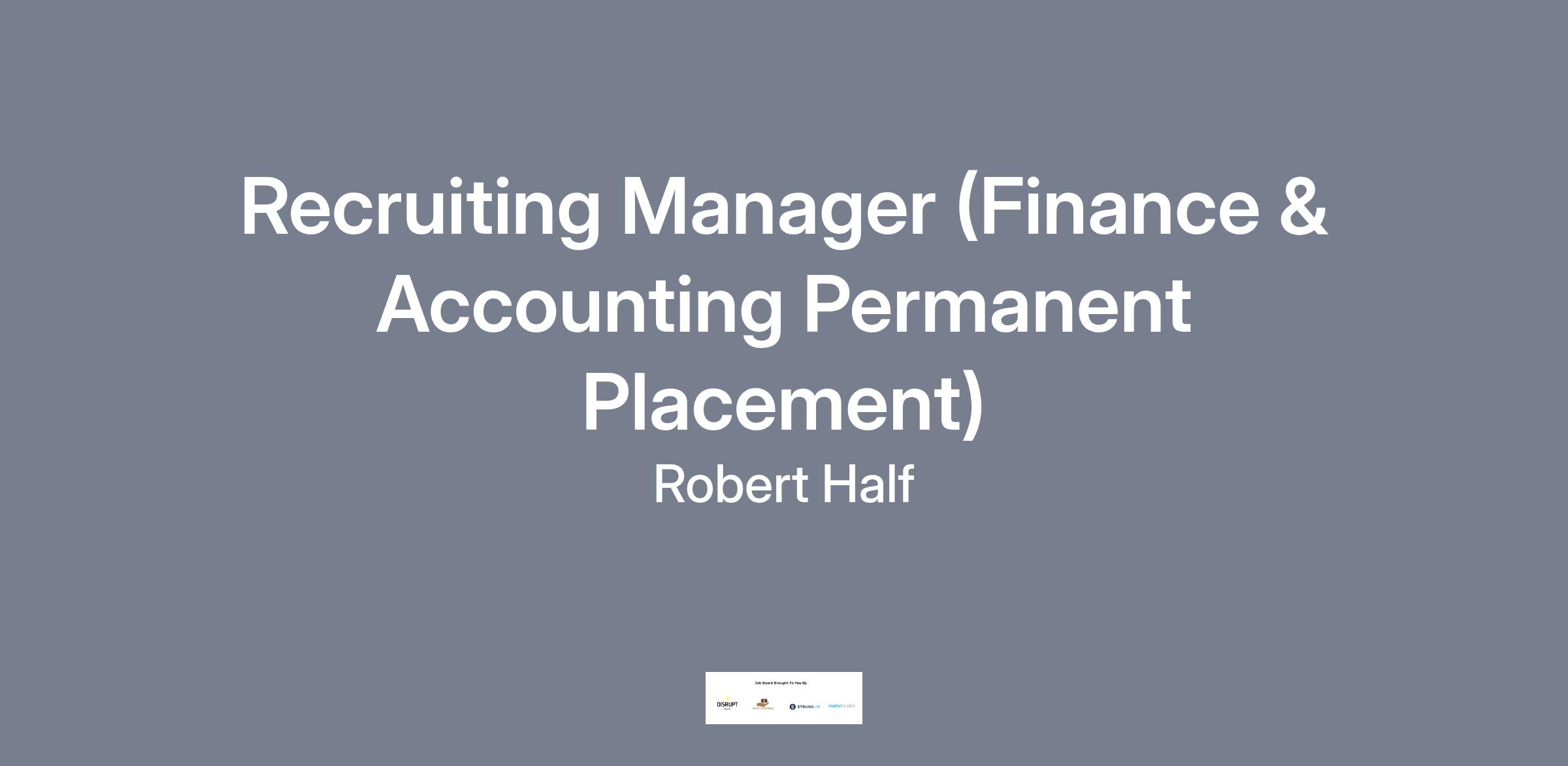 Recruiting Manager (Finance & Accounting Permanent Placement)LOCATION