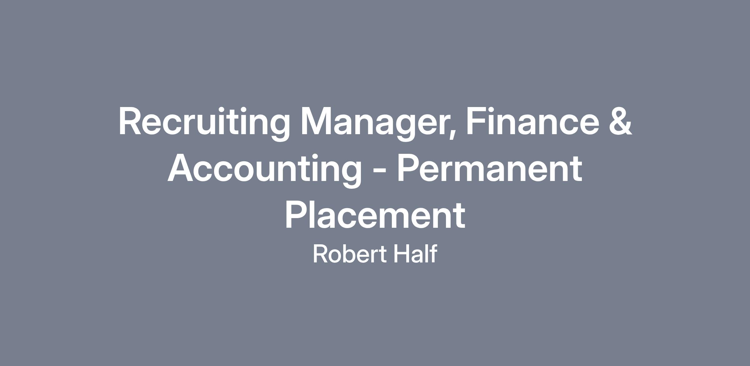 Recruiting Manager, Finance & Accounting - Permanent PlacementLOCATION