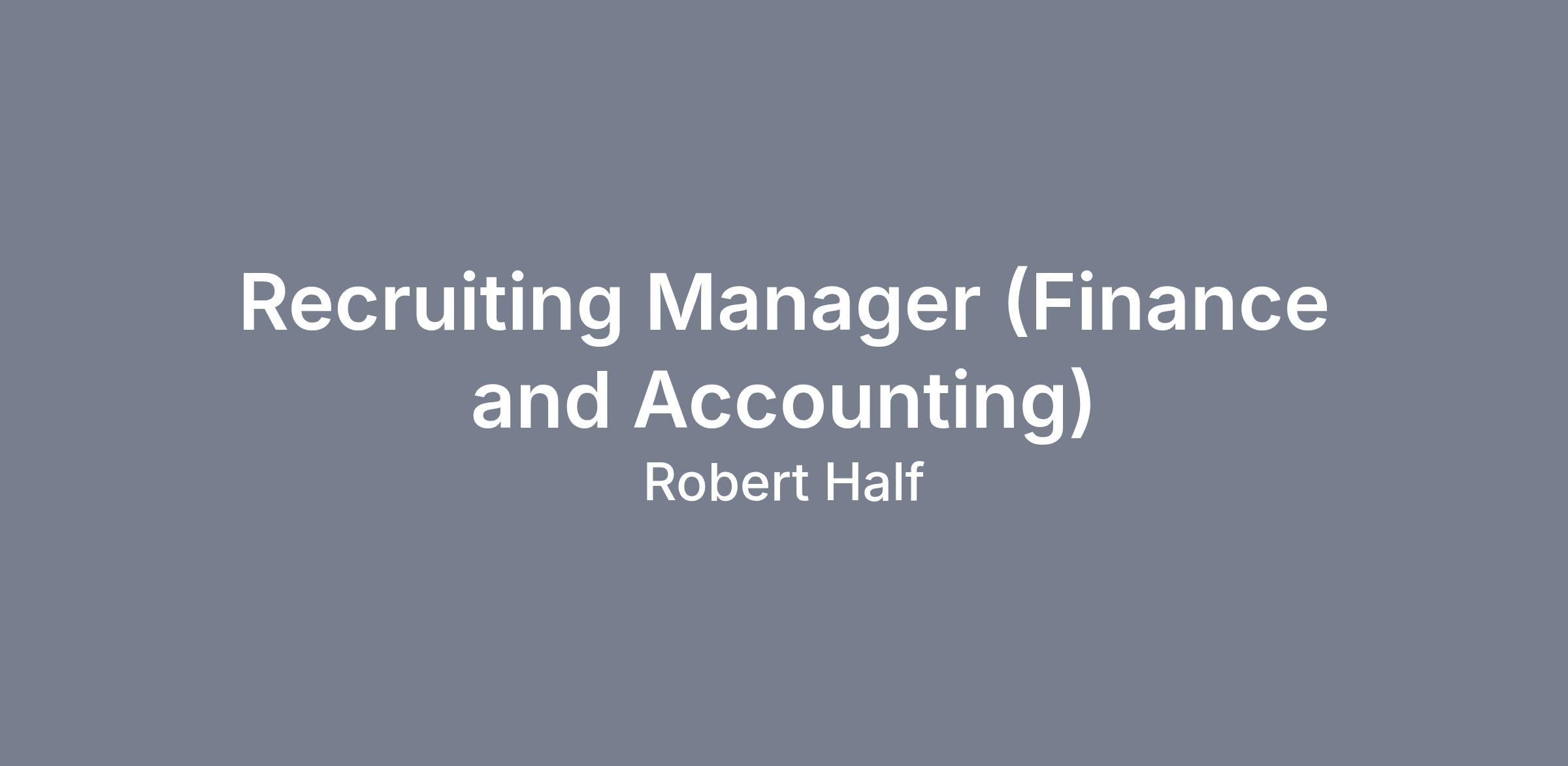 Recruiting Manager (Finance and Accounting)LOCATION