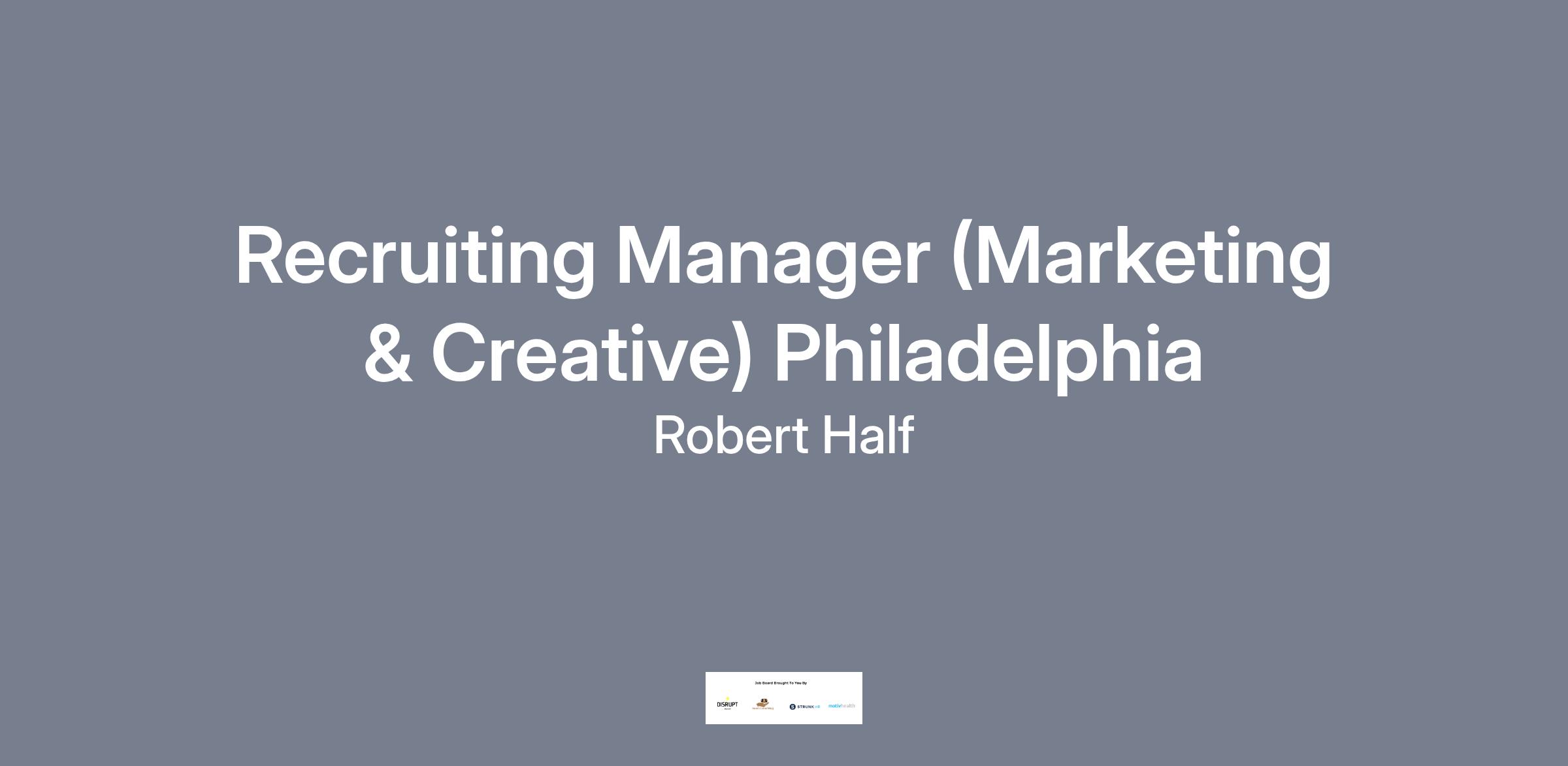 Recruiting Manager (Marketing & Creative) PhiladelphiaLOCATION