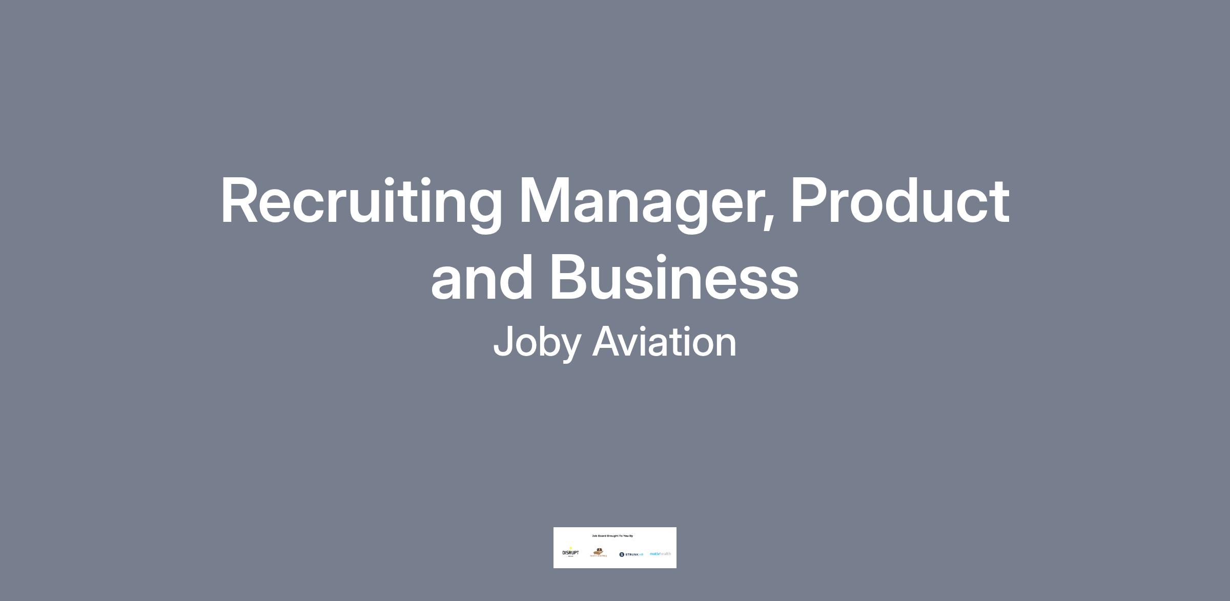 The Recruiting Manager, Product and Business, will play a pivotal role in contributing to the team’s mission to attract and onboard a diverse workforce that will bring the Joby mission to fruition. This position requires strong leadership skills, strategic thinking, and the ability to build and maintain relationships both internally and externally. The selected individual will maintain a workload of requisitions as well as supervise the work of their direct reports. This role is onsite in one of our California locations (Santa Cruz, San Carlos or Marina).