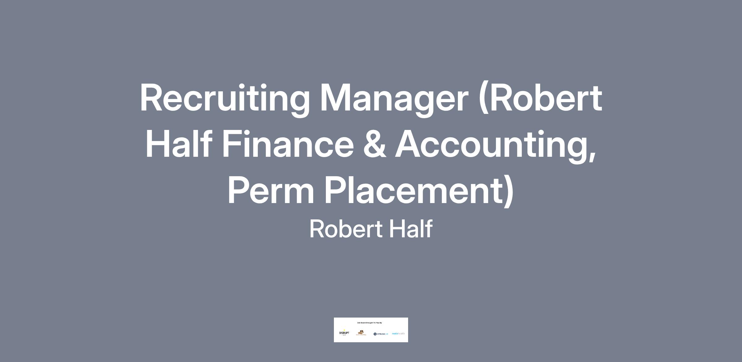 Recruiting Manager (Robert Half Finance & Accounting, Perm Placement)LOCATION