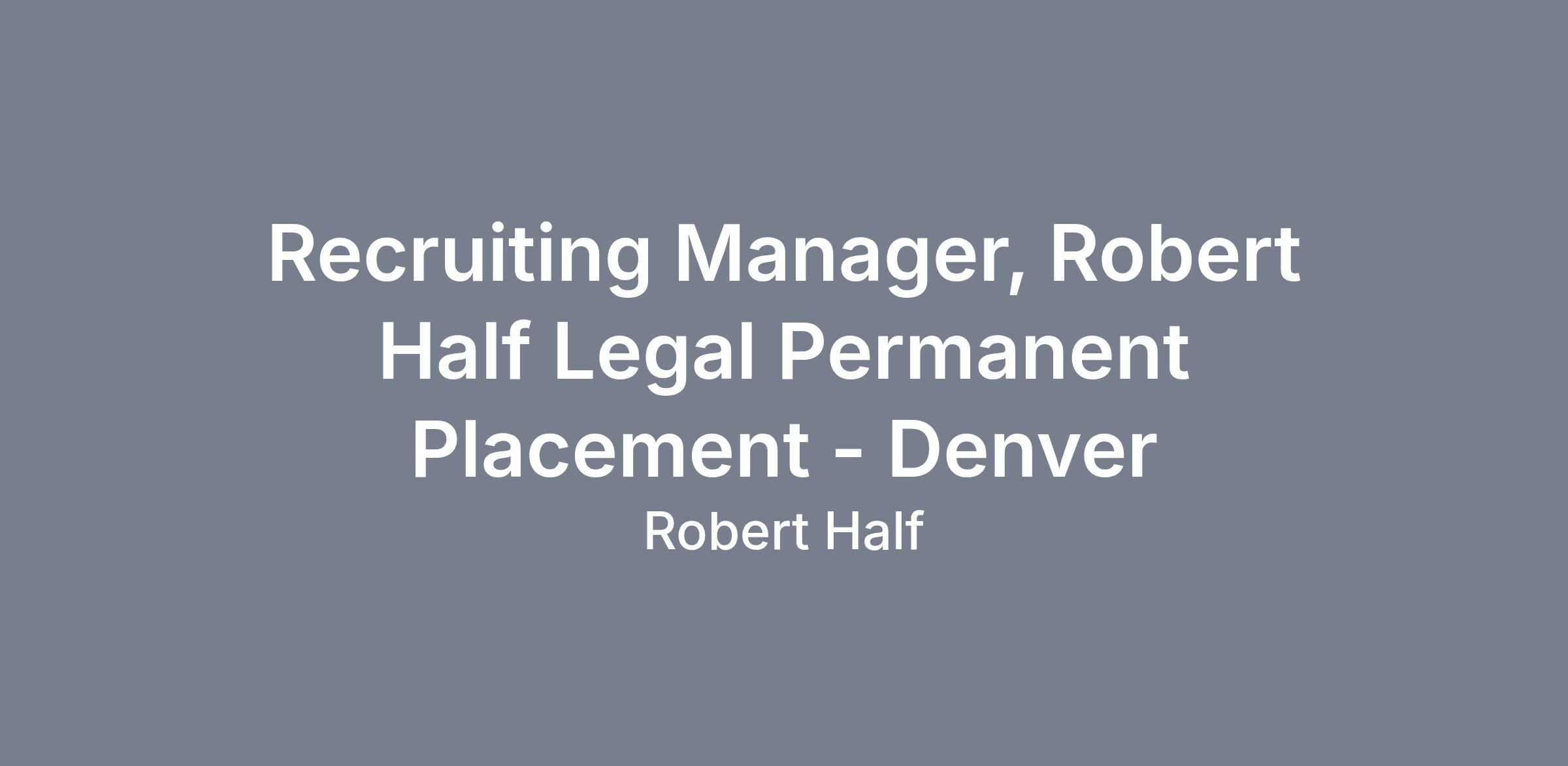 Recruiting Manager, Robert Half Legal Permanent Placement - DenverLOCATION