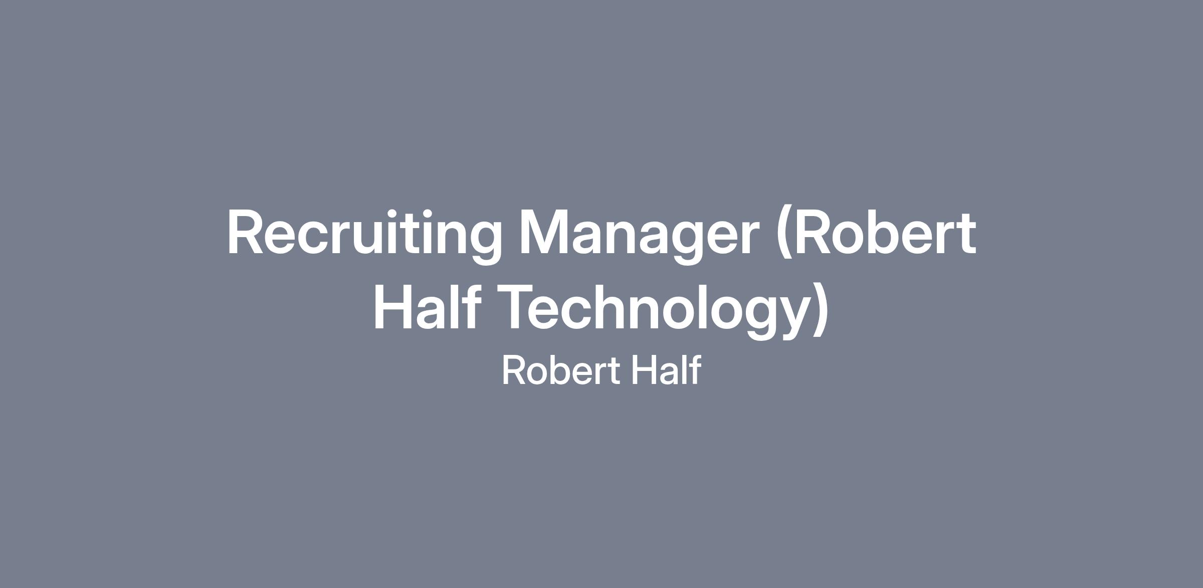 Recruiting Manager (Robert Half Technology)LOCATION