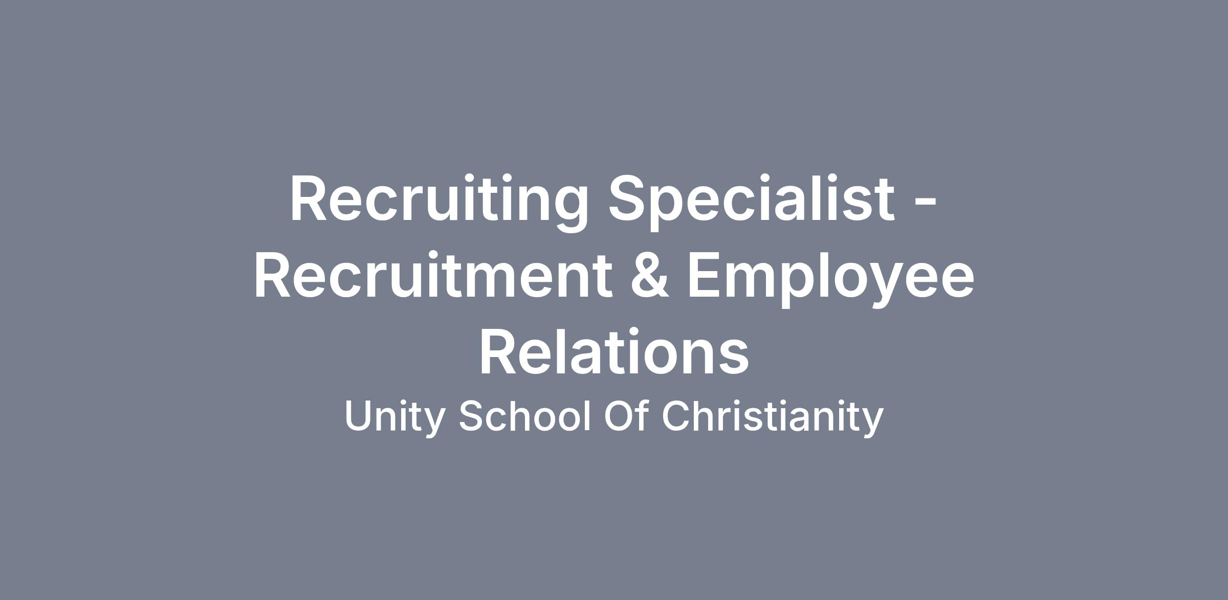DescriptionPosition Summary: This position will have be responsible for successfully recruiting and have a passion for championing equity and inclusion. This position will collaborate closely with hiring departments to articulate the needs and implement customized recruiting plans. Under the direction of the Human Resource Manager, the Recruiting Specialist will be responsible for organizing and implementing strategic recruiting programs centered in Unity’s Embracing Differences Initiative. This includes researching hiring best practices, emerging technologies, and outreach methodologies.