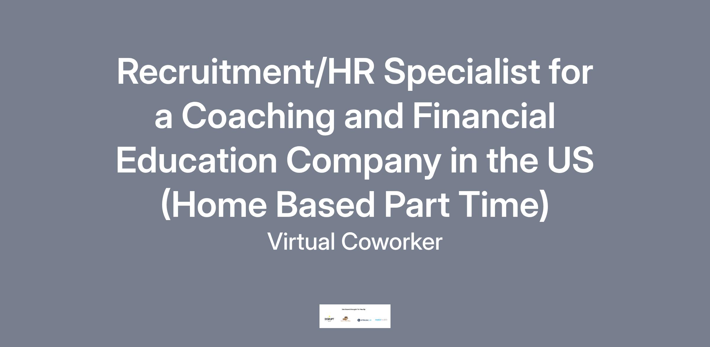 https:\/\/www.linkedin.com\/company\/virtual\-coworker"}],"isMobile":false,"iframe":"true","jobType":"Part time","applyName":"Apply Now!","zsoid":"8208015","FontFamily":"Arial, Helvetica, sans\-serif","jobOtherDetails":[{"fieldLabel":"Job Category","uitype":2,"value":"HR\/Recruitment"},{"fieldLabel":"Work Schedule","uitype":1,"value":"Monday to Friday, 9 am \- 1 pm Central Standard Time (Subject to Flexibility)"},{"fieldLabel":"Hours Per Day","uitype":2,"value":"Part Time â 4 hours per day"},{"fieldLabel":"Industry","uitype":2,"value":"Technology"},{"fieldLabel":"Work Location","uitype":1,"value":"Home Based \- Philippines"},{"fieldLabel":"City","uitype":1,"value":"Mesa"},{"fieldLabel":"State\/Province","uitype":1,"value":"Arizona"},{"fieldLabel":"Zip\/Postal Code","uitype":1,"value":"85209"}],"headerName":"Recruitment\/HR Specialist for a Coaching and Financial Education Company in the US (Home Based Part Time)","widgetId":"147741000000390320","isJobBoard":"false","userId":"147741000000027001","attachArr":[],"customTemplate":"3","isCandidateLoginEnabled":true,"jobId":"147741000068820013","FontSize":"12","location":"Mesa","embedsource":"CareerSite","logoId":"idwop0ece2fcac21a443ba16938fb832bdc3b"}