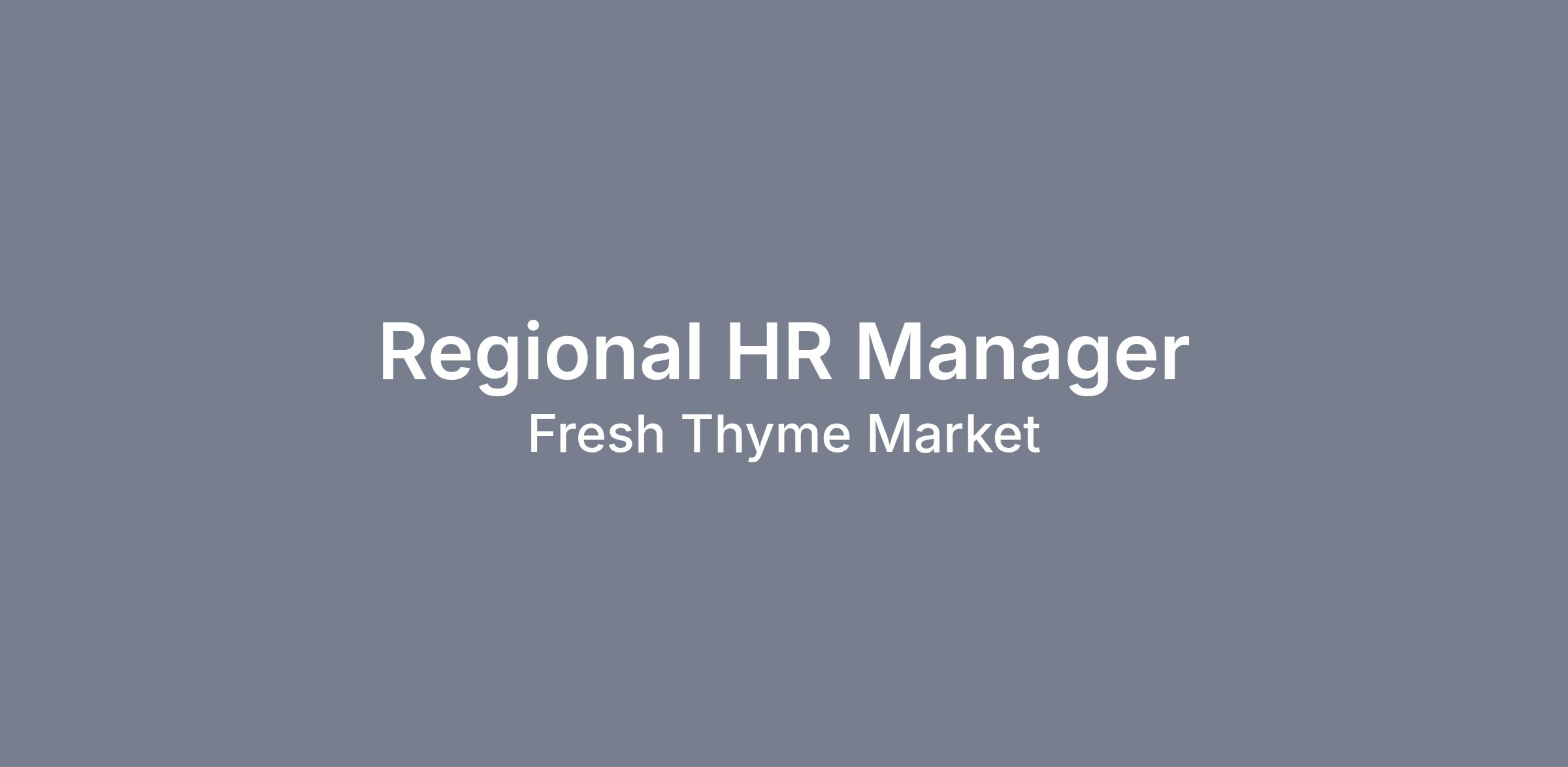The Regional Human Resource Manager is responsible to plan, administer, and coordinate all human resource management activities for Fresh Thyme Market to maximize the strategic use of human resources. This position is a business partner with store and regional leadership to ensure that the assigned stores sustain an environment where each team can maximize their individual and team performance. Leads and implements proactive, effective and consistent delivery of Human Resource solutions, programs and services and maintain functions such as employee relations, performance management, personnel policies, and regulatory compliance. This includes active partnership and collaboration to build strong store teams, identify gaps and present solutions, implementation and assessment of human resource activity. Additionally, the role investigates team member concerns and seeks to resolve employee relations issues or violations while addressing root-cause issues.