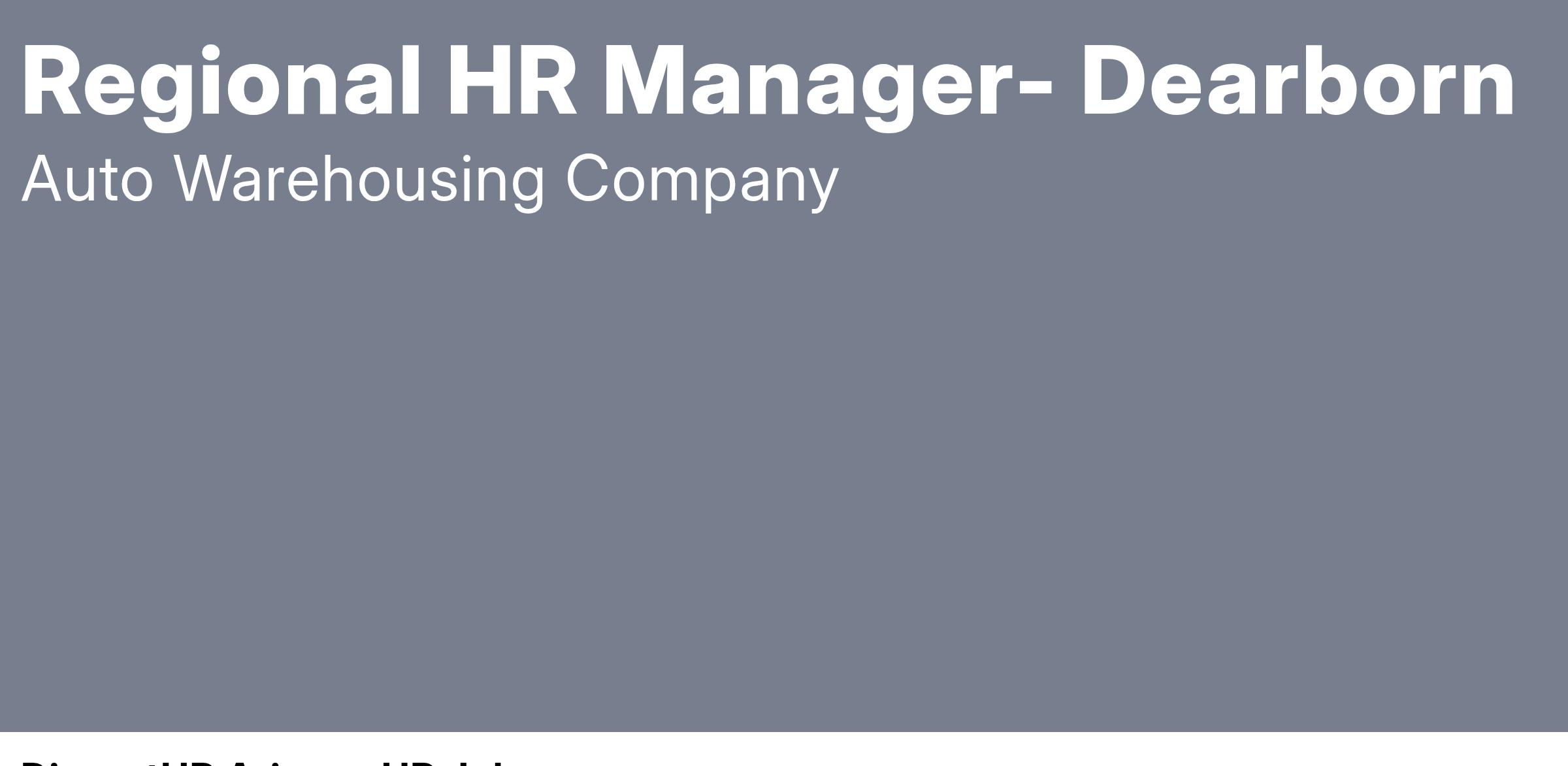 Auto Warehousing Company is hiring a full time Regional Human Resources Manager based out of our Dearborn MI Regional Office. This position will be responsible for other locations throughout the midwest so travel availability is a must. AWC offers competitive weekly pay and an amazing benefits package. This position is also bonus eligible! Apply today for fast consideration!