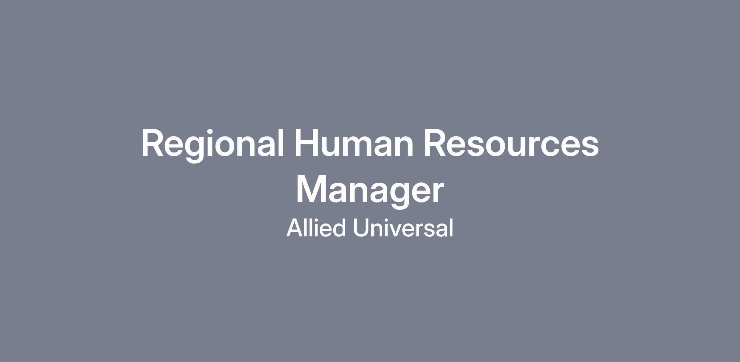 Allied Universal is looking to hire a Regional Human Resources Manager. This position is responsible for employee relations, employment compliance, unemployment claims, and monitoring of employment status for the employees of that designated area. With a focus on investigations, manager and supervisor training, and compliance. This position will ensure all recruitment processes, practices, compliance, technology, and tools are used in the field to maintain stated region goals pertaining to non-billable overtime (NBOT), Security Officer Turnover, and Account Manager Turnover.