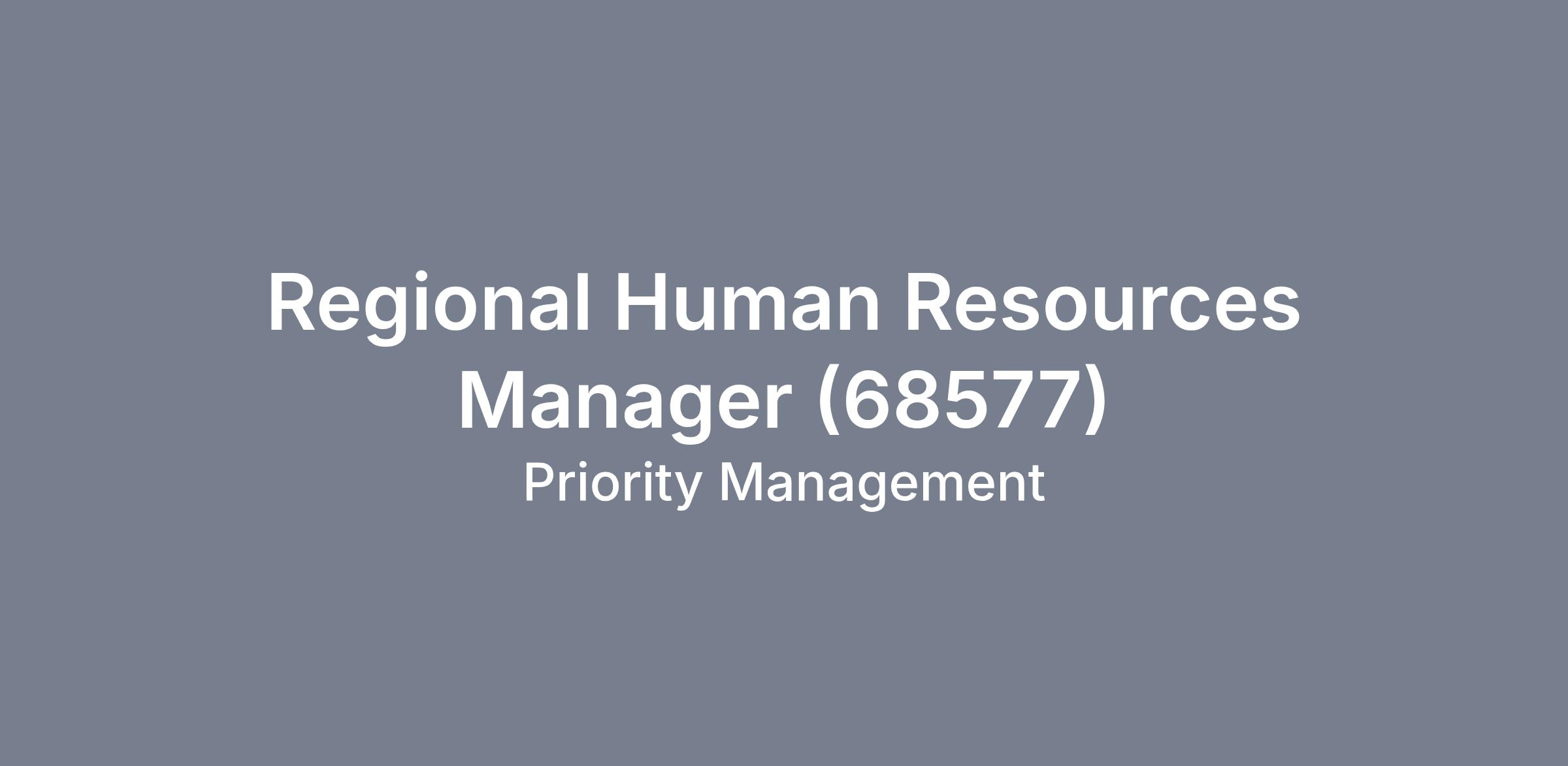 DescriptionJob Title: Regional Human Resources Manager