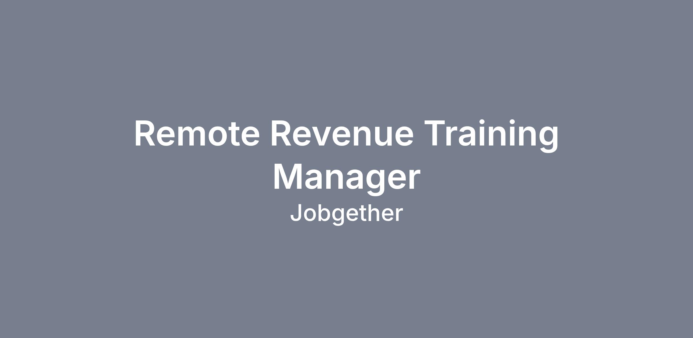 Remote Revenue Training Manager