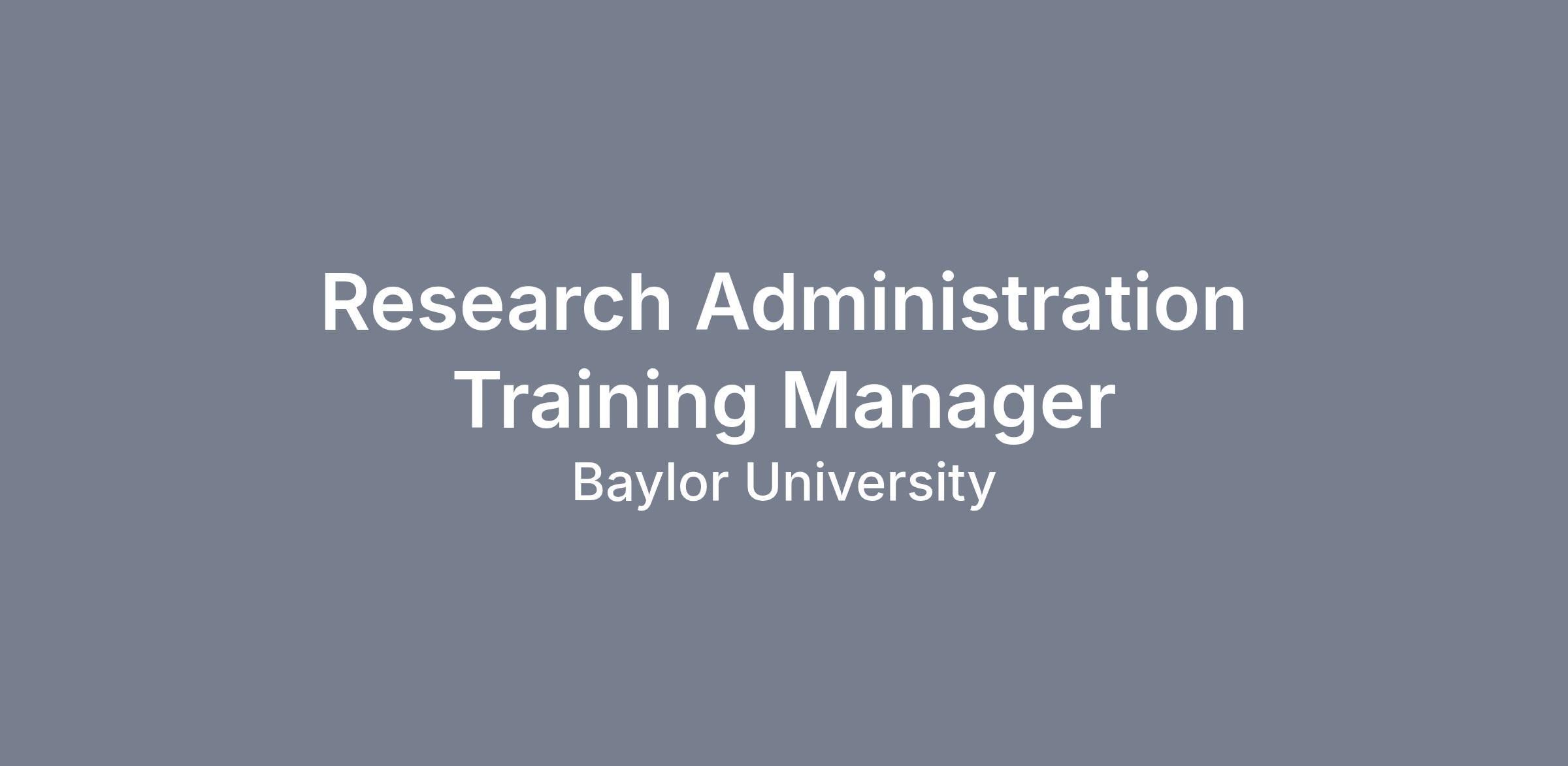 Baylor University is seeking a Research Administration Training Manager who will be responsible for designing, developing, delivering, and continuously improving training programs that build research administration competency across the institution. This role serves as the primary educational resource for research administrators, faculty, department administrators, and other stakeholders engaged in sponsored research activities.