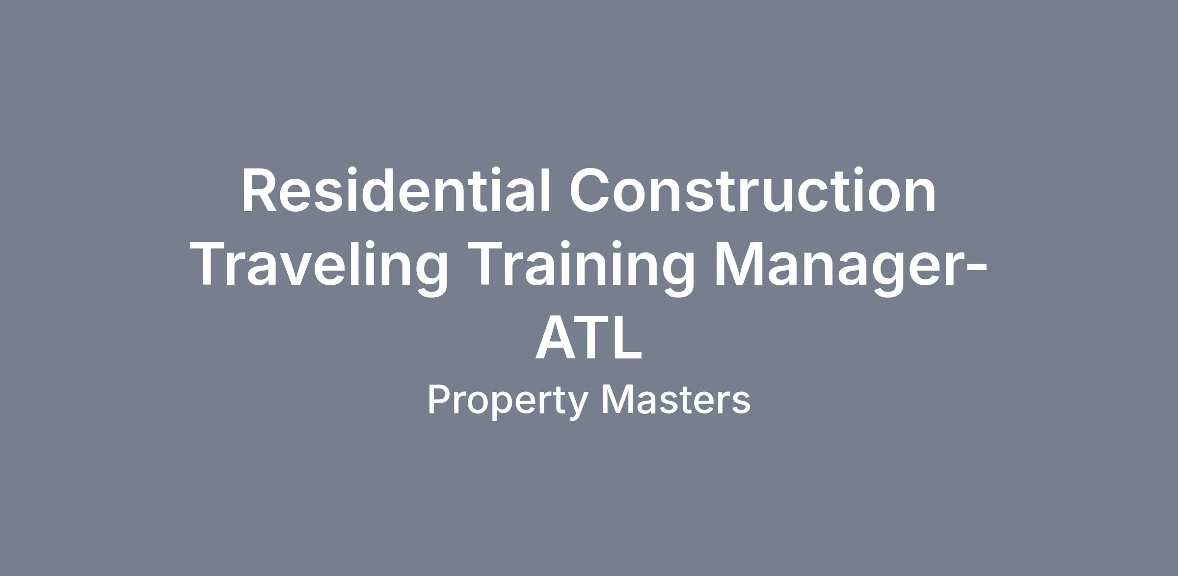 Property Masters is a semi national residential construction company that is considered the premier construction provider in the SFR space. We are looking for a Traveling Training Manager who is a leader, energetic and thrives in a fast-paced but extremely rewarding company environment.