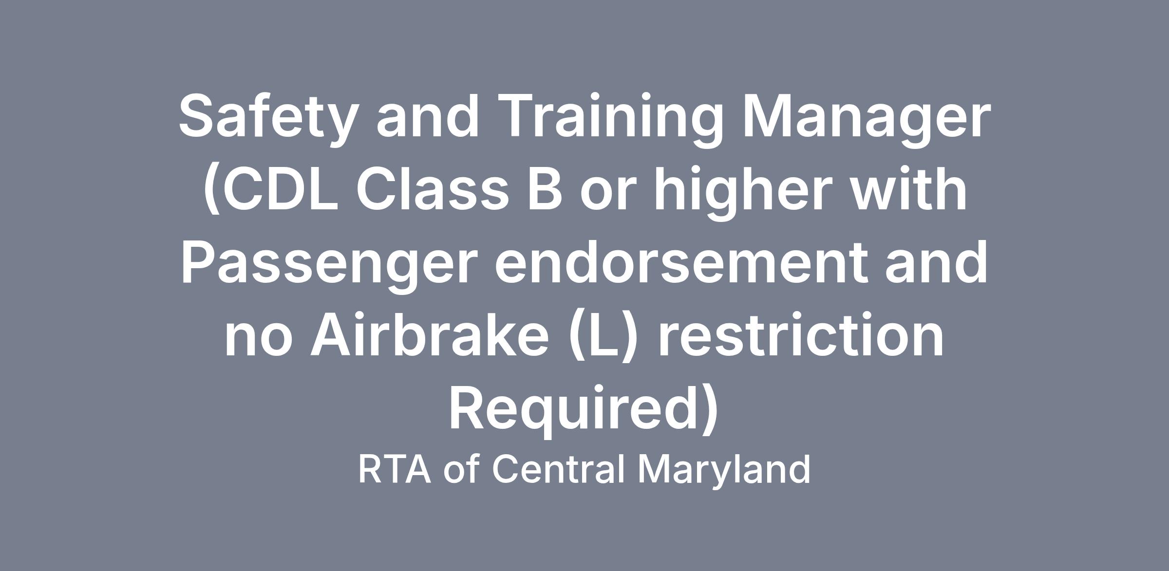- This position is safety-sensitive and is subject to RTA's drug and alcohol testing program.