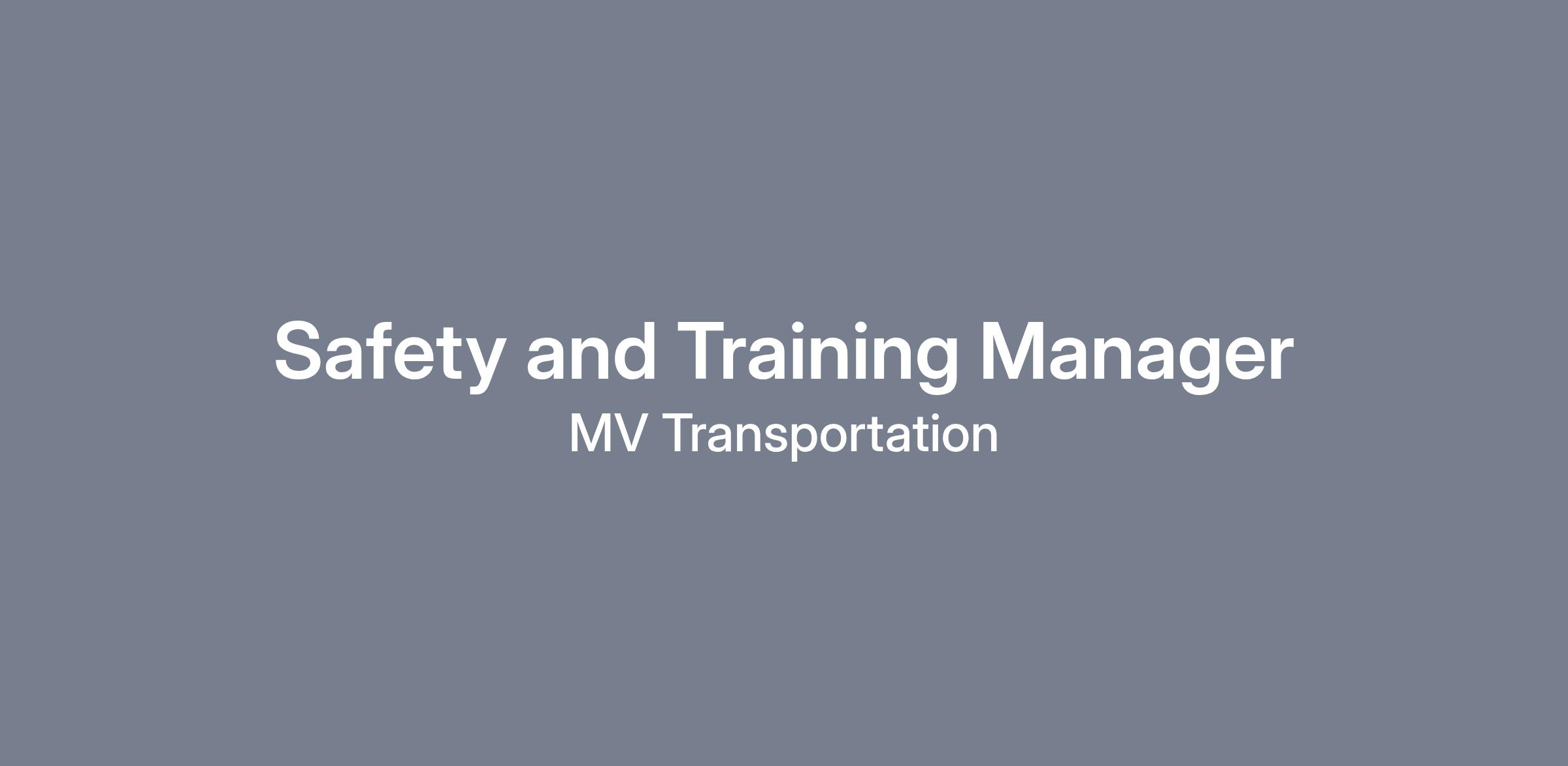 MV Transportation is seeking an experienced Safety and Training Manager. The Safety and Training Manager will be a hands-on manager helping implement programs and procedures in compliance with State and Federal regulations and corporate and client policies and be accountable for the leadership of OSHA/CDL at the division level.