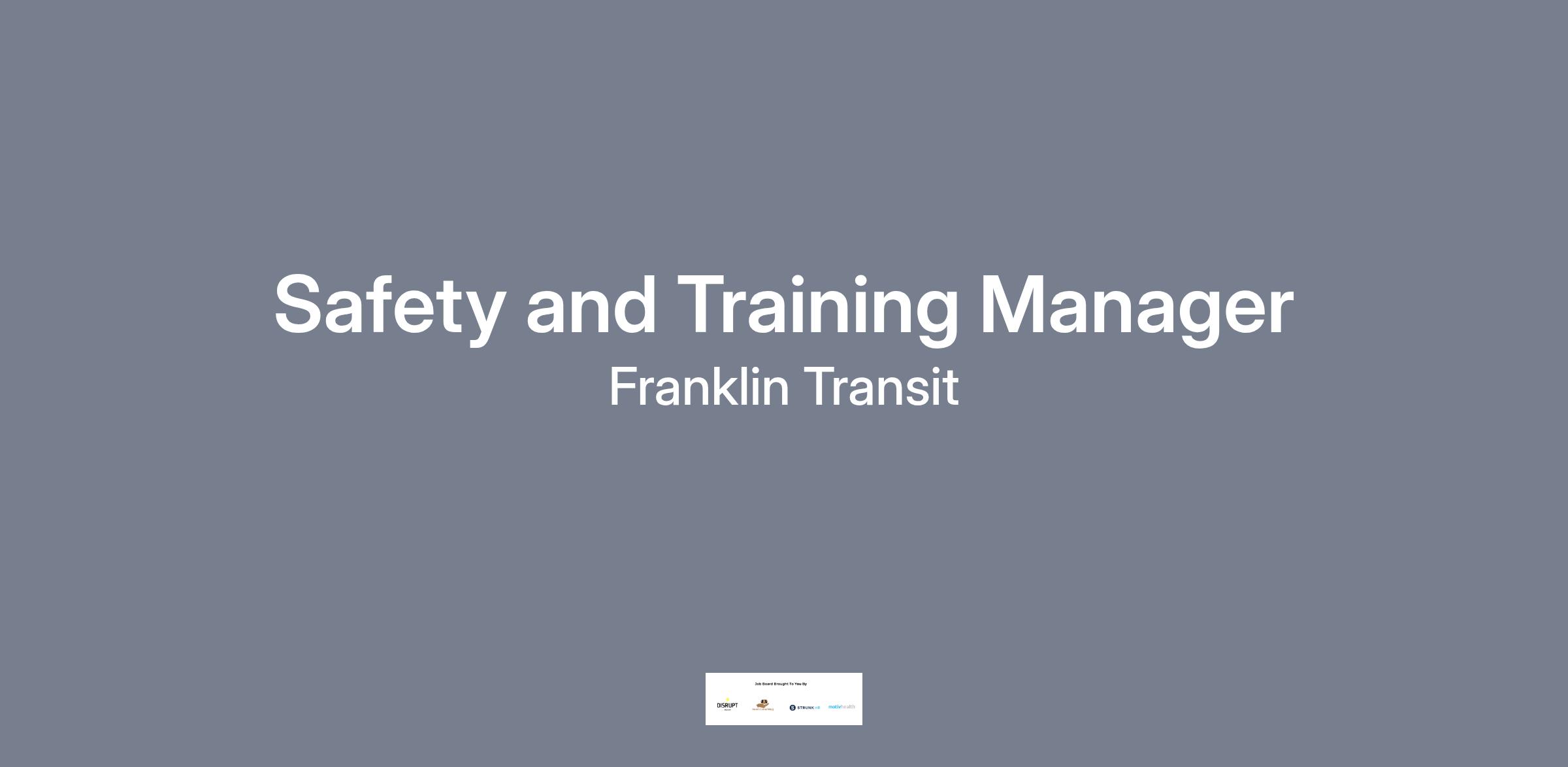 FRANKLIN TRANSIT MANAGEMENT, INC. JOB DESCRIPTION: Safety and Training Manager
