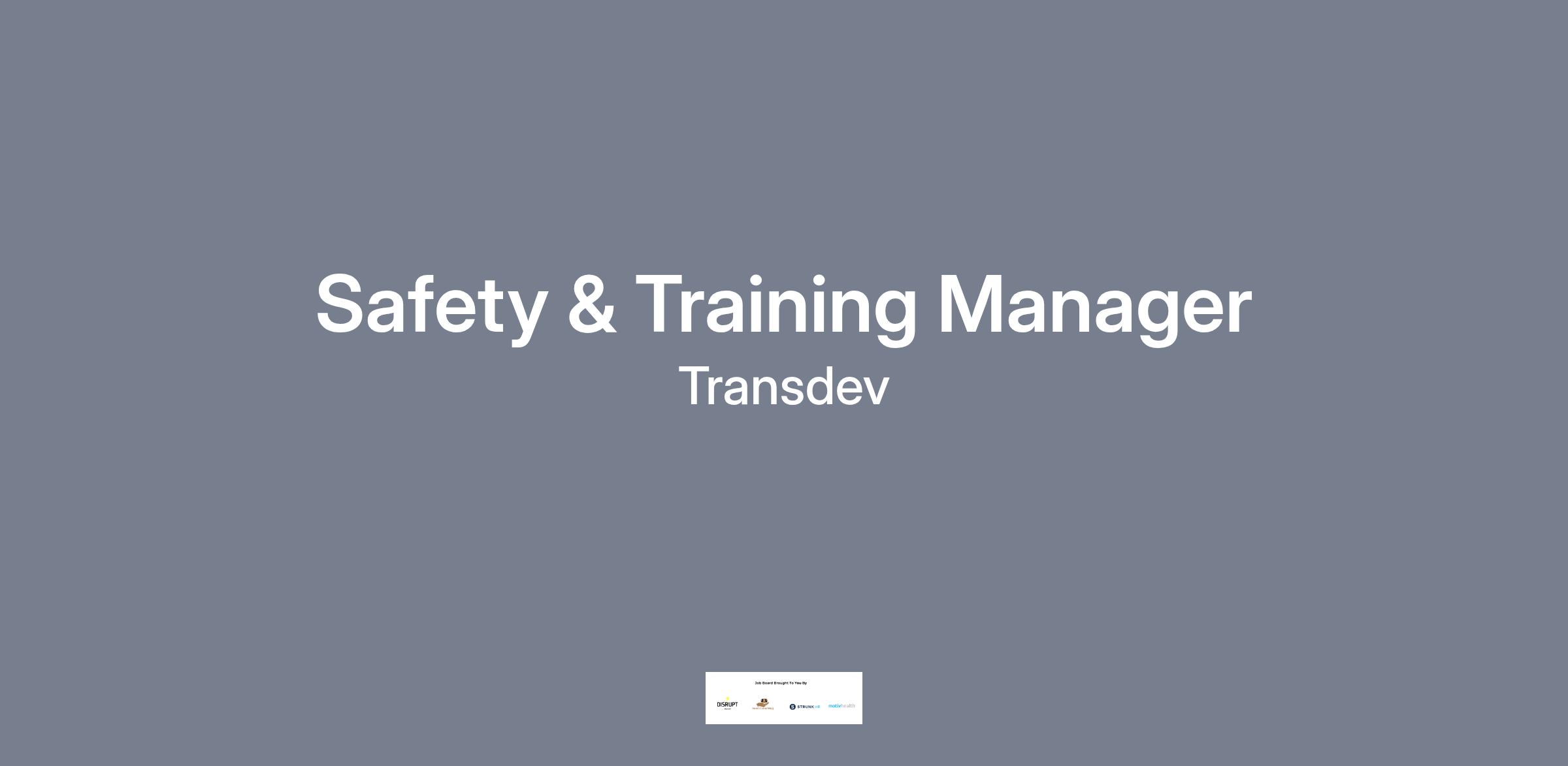 Safety and Training Manager