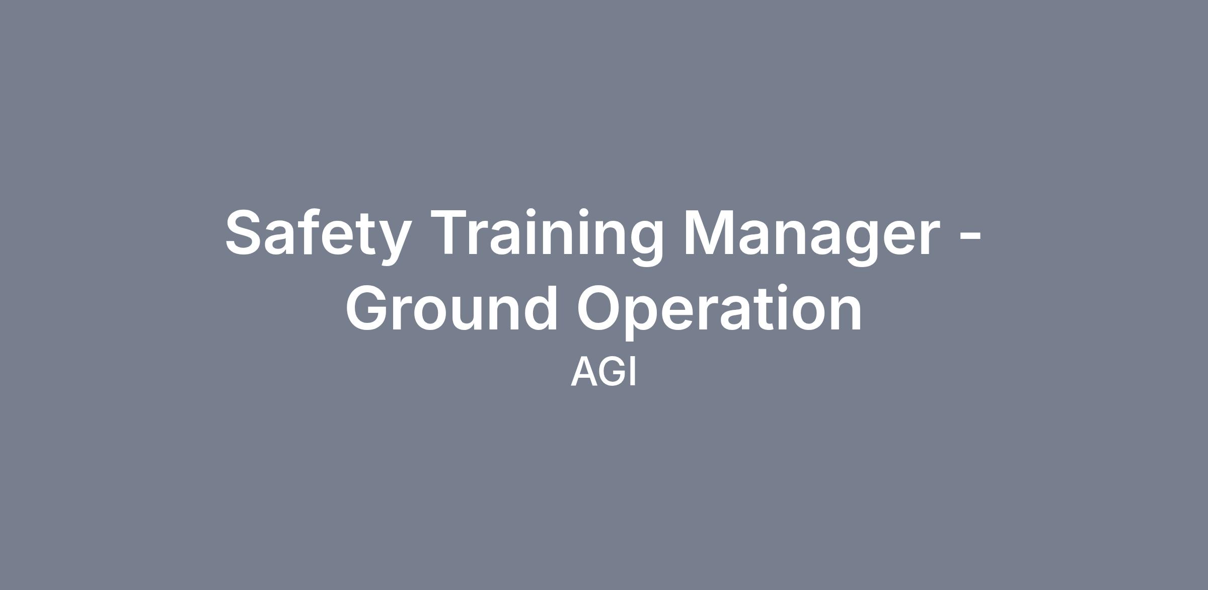 As an AGI Safety & Training Manager you will: