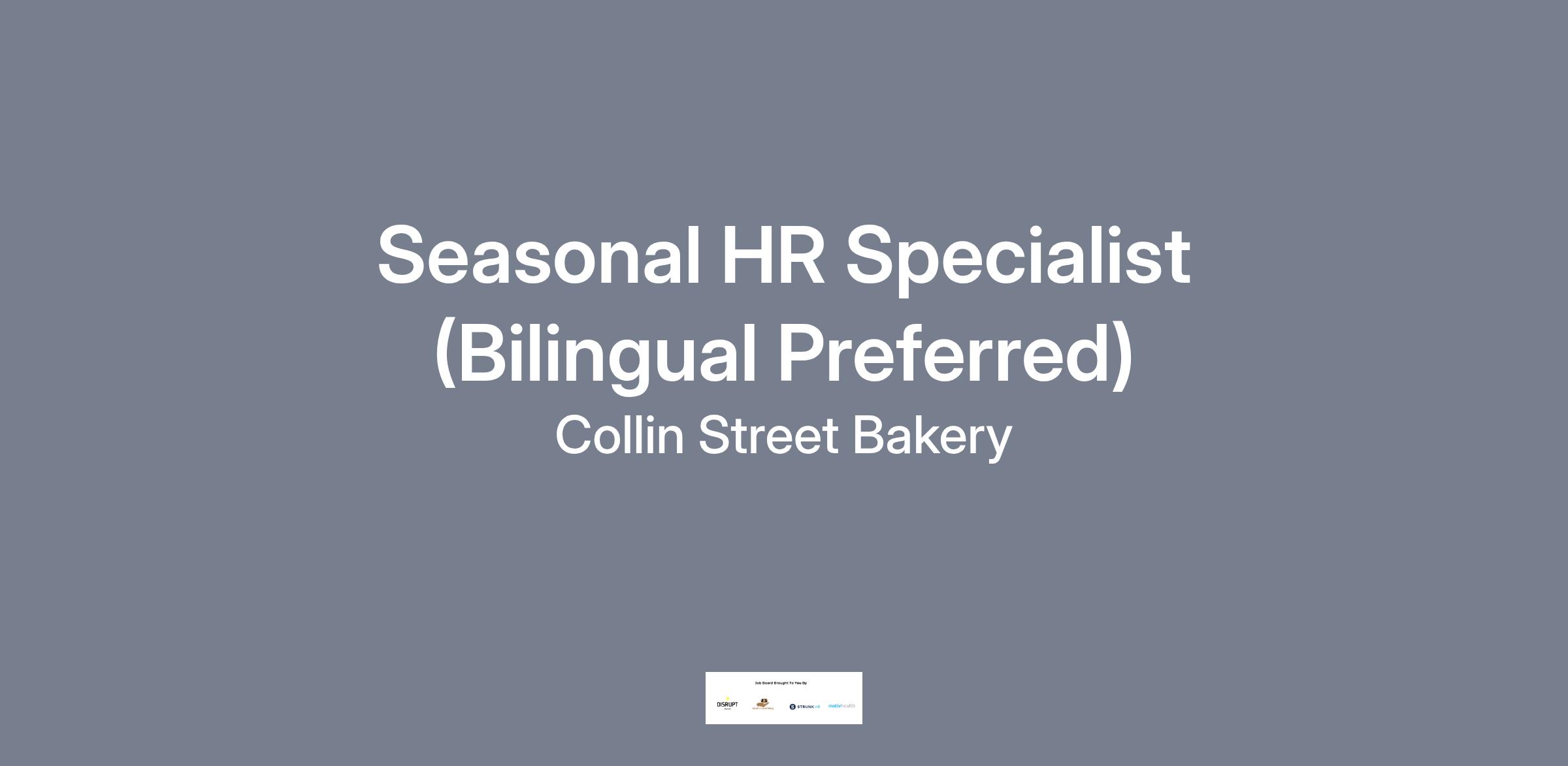 Join our HR team at Collin Street Bakery this holiday season! We’re seeking a Seasonal HR Specialist to assist with onboarding and employee support during our busy period. Perfect for bilingual candidates looking to gain hands-on HR experience in a fun, fast-paced, and people-focused environment.