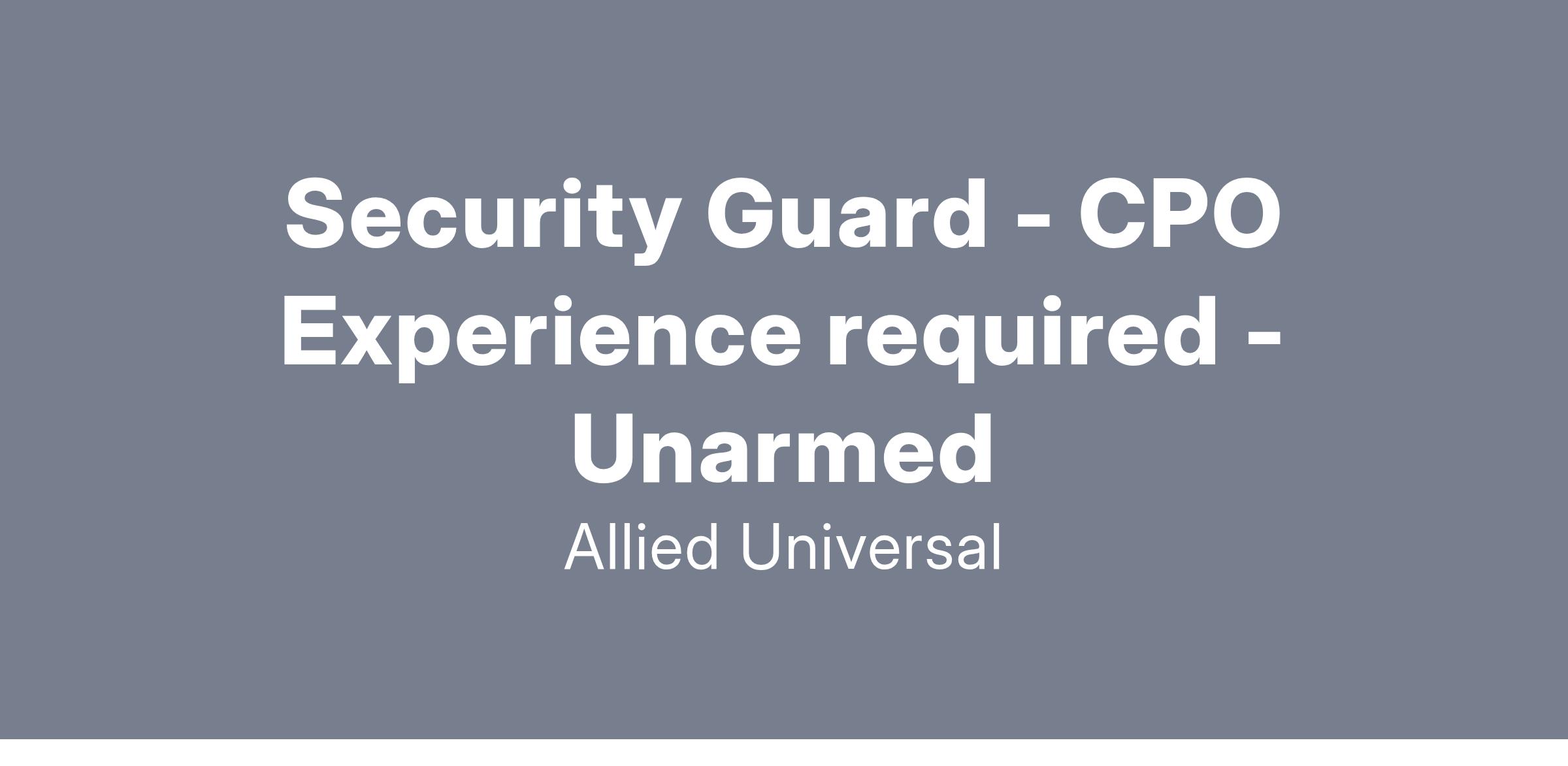 As a Security Guard - CPO Experience required - Unarmed, you will serve and safeguard clients in a range of industries such as Commercial Real Estate, Healthcare, Education, Government and more.