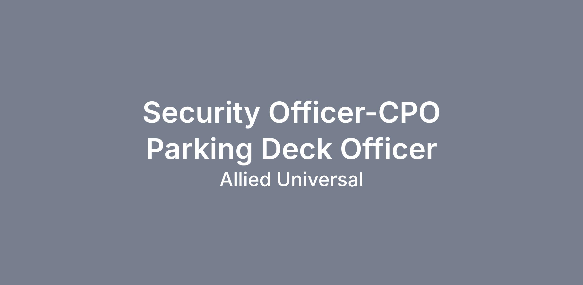 As a Security Officer-CPO Parking Deck Officer you will serve and safeguard clients in a range of industries. Join Allied Universal in a dynamic location where you will monitor and patrol assigned areas, maintain a visible presence to help reduce security-related incidents, and provide outstanding customer service and communication. In this role, you will support daily operations with agility, reliability, and innovation while working as part of a team that puts people first and acts with integrity.