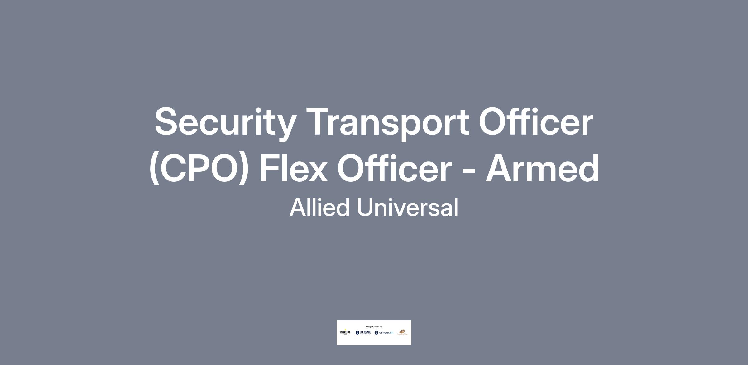 Allied Universal® is hiring a Custom Protection Officer (CPO) Flex Officer. The Custom Protection Officer Flex Officer will conduct armed and/or unarmed foot and/or vehicle patrol (interior and/or exterior). Additional duties include control access and egress; monitor CCTV and alarm systems; compose reports; deter criminal activity and misconduct. The Custom Protection Flex Officer will work at various assignments and may be called upon to work irregular shifts at times with little to no advance notice.