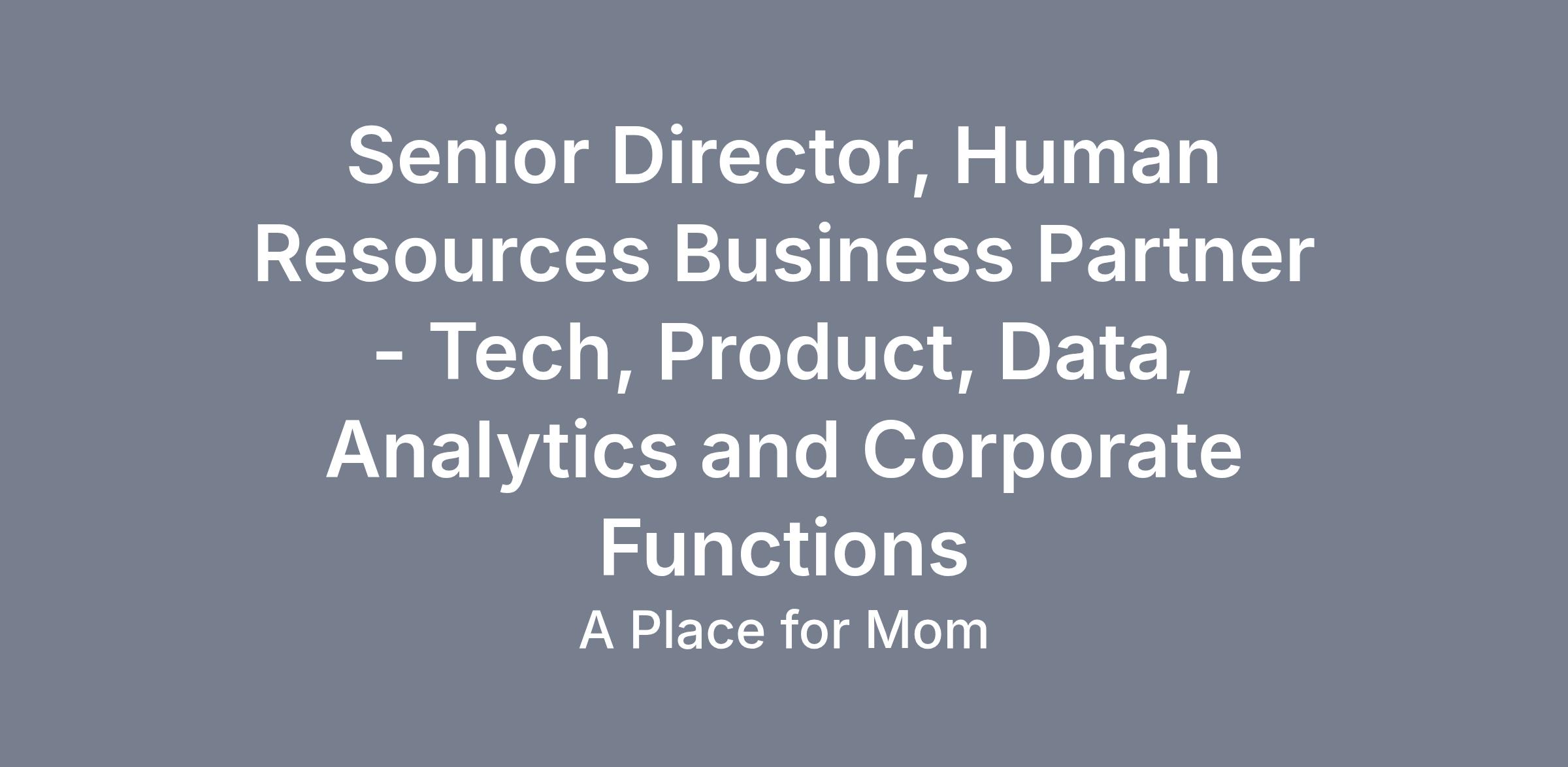 As Senior Director, Human Business Partner (HRBP) -Tech, Product, Data, Analytics and Corporate Functions you will play a critical role in aligning people-focused strategies with business goals to drive organizational performance, culture, and employee experience. Acting as a trusted advisor to these departments you will help shape workforce planning, talent development, organizational design, and change initiatives. This role is both strategic and hands-on, ensuring that the company’s people practices empower teams to deliver exceptional business results.