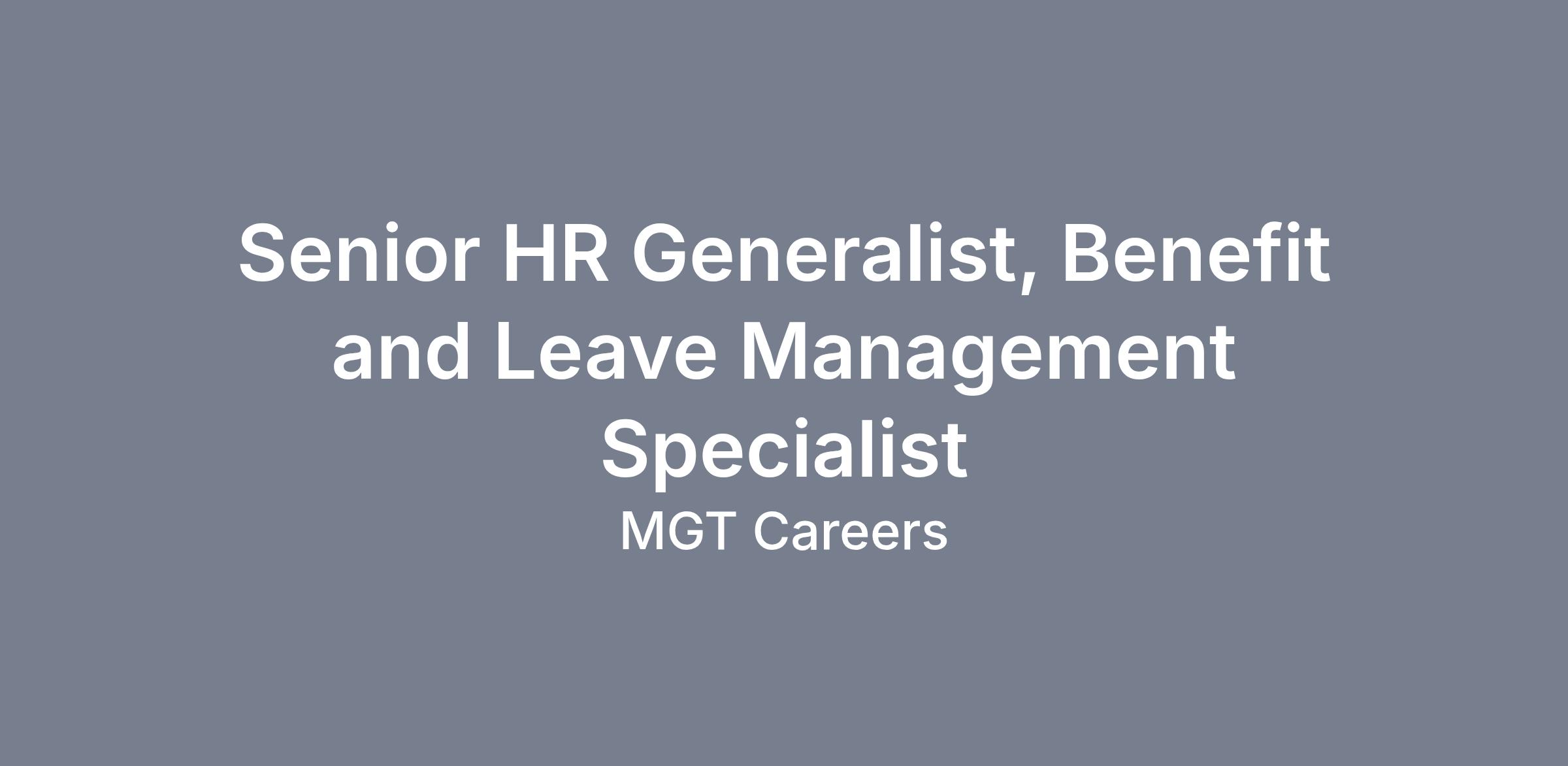 Senior HR Generalist, Benefit and Leave Management Specialist