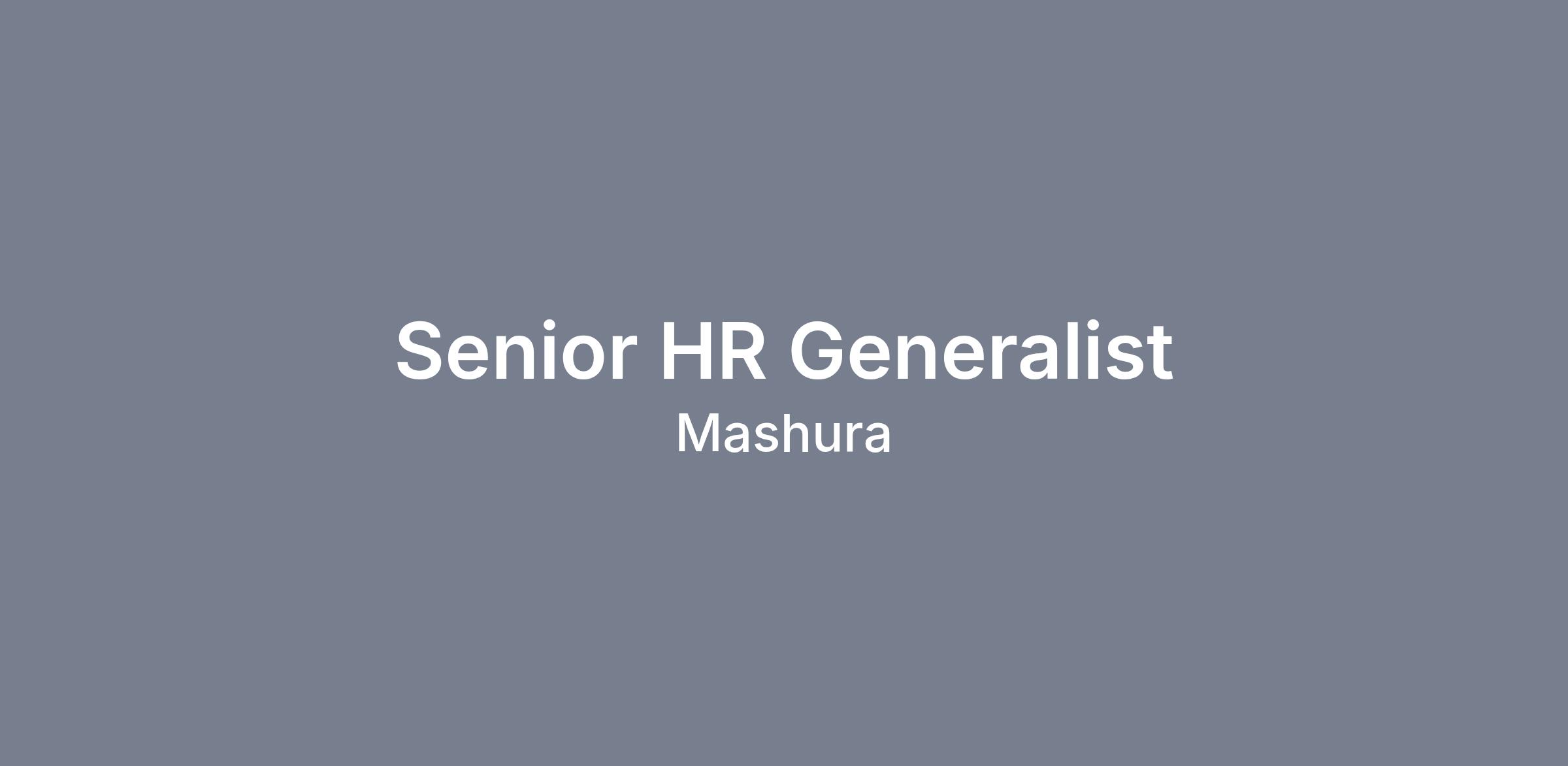 Mashura is seeking a disciplined, high-ownership Senior HR Generalist to support a growing multi-state workforce. This role reports directly to the Chief People Officer and leads day-to-day HR operations while partnering closely with all levels in the organization.