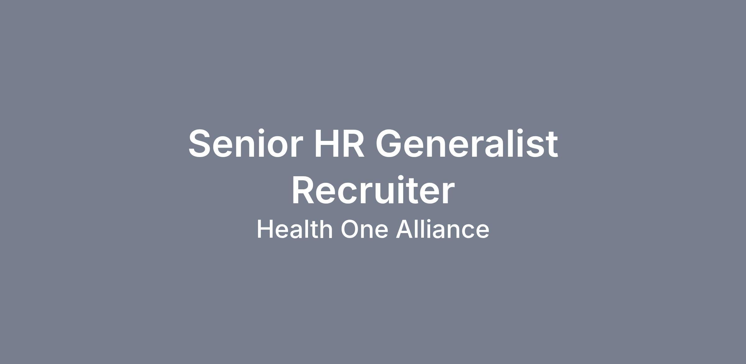 The Senior HR Generalist/Recruiter is responsible for performing daily functions of the Human Resources Department including administering human resources policies, procedures, and provides proactive support to the HR team, operational leaders, and employees.