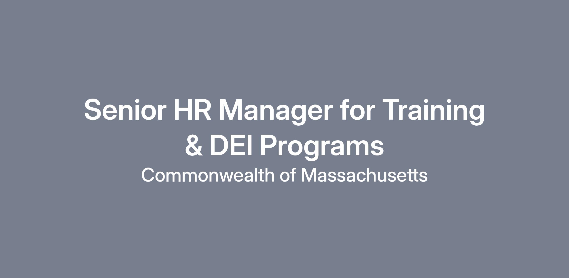 The Senior HR Manager for Training and Diversity, Equity and Inclusion (DEI) Programs serves as a cross-functional leader in the Mass Gaming Commission (MGC) Division of Human Resources. This role manages and drives programs that advance the MGC’s goals and focuses on\: Education & Awareness, Consulting & Coaching, Experience & Culture, and Community and Stakeholder Partnerships. The position will also provide Human Resources support to the Senior HR Manager in many areas of the HR practice including employee relations and strategic initiatives.