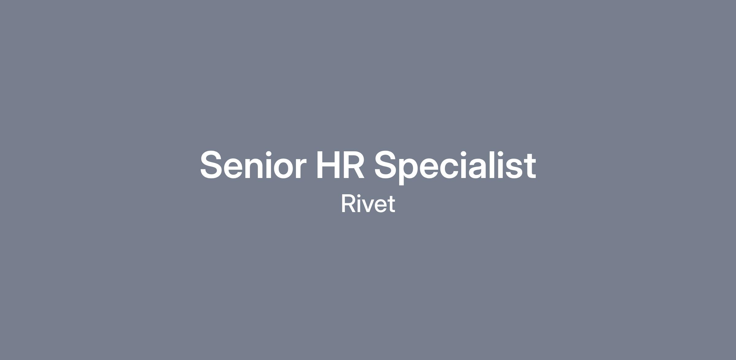 Rivet Operations Company (“Rivet”) has an opening for a Senior HR Specialist to join our rapidly growing team in the Washington DC area. Rivet is an exceptional industry partner to the Department of Defense (DoD) and a leader in physical and cyber security, IT management, logistics, supply chain management, process improvement and development.