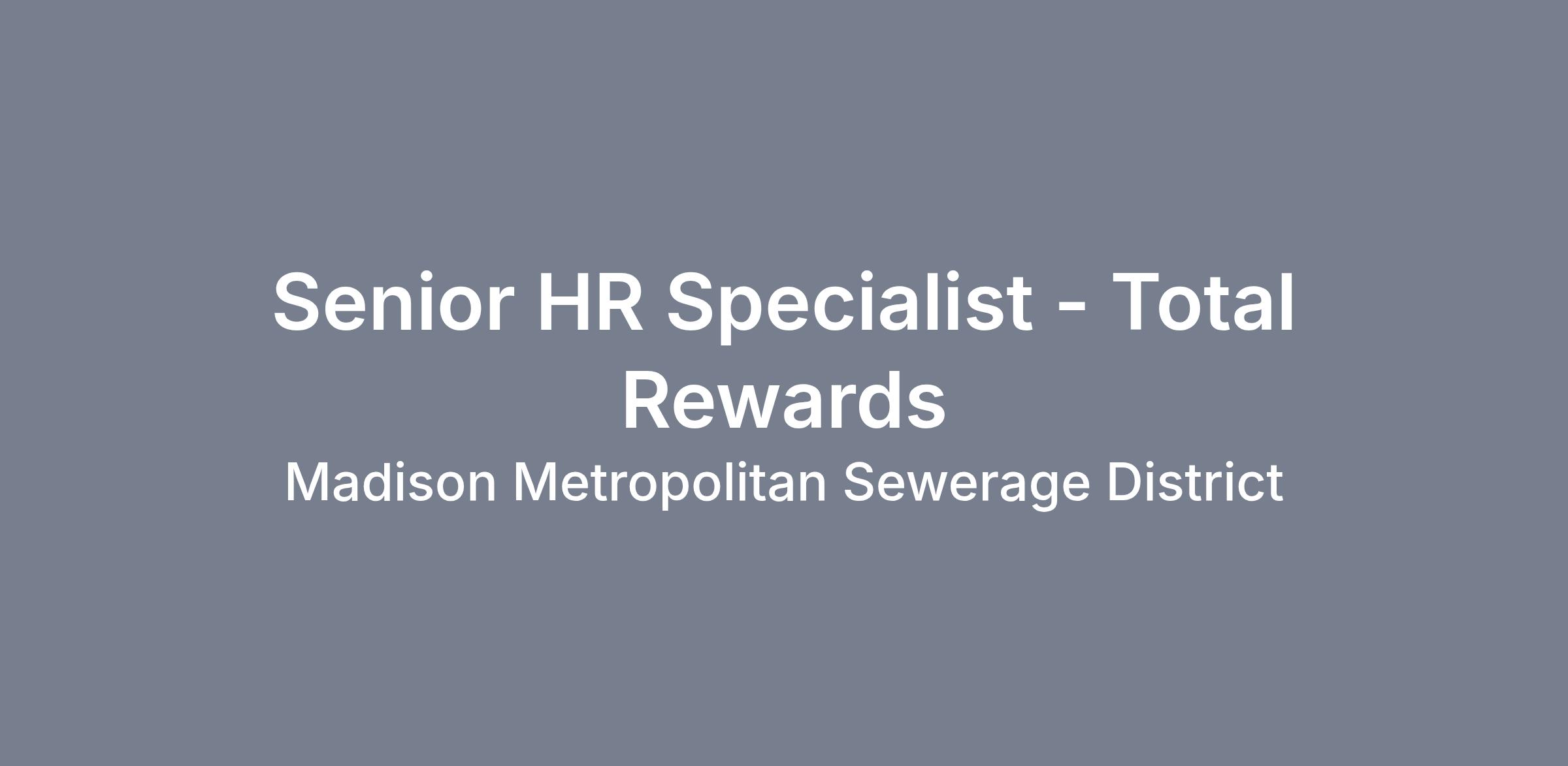 Under the general supervision of the Human Resources Manager, the Senior HR Specialist – Total Rewards will serve as a strategic architect of our employee value proposition. In this role, the Senior HR Specialist will be responsible for the research, design, and execution of a holistic rewards strategy that balances fiscal responsibility with a best-in-class employee experience. This position will ensure employees understand, utilize, and feel valued by our comprehensive compensation and benefits ecosystem at Madison Metropolitan Sewerage District (the “District”).