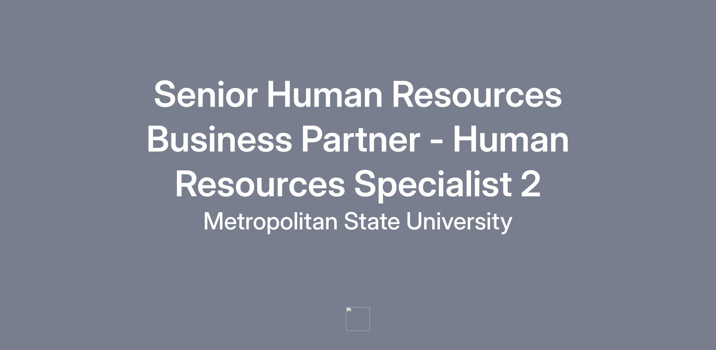 Senior Human Resources Business Partner - Human Resources Specialist 2Institution: