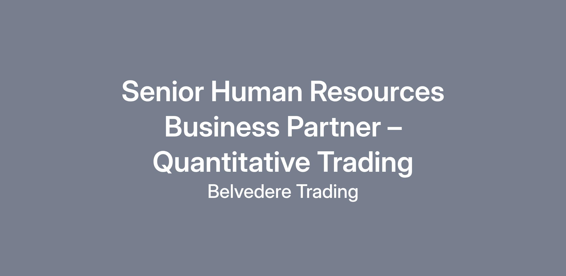 Belvedere is a dynamic proprietary trading firm headquartered in downtown Chicago. We are seeking an experienced Senior Human Resources Business Partner (HRBP) to support our Trading department. The HRBP will act as a strategic partner to business leaders, aligning human capital initiatives with business objectives, fostering a high-performance culture, and providing hands-on HR support for performance management, employee relations, change management, and organizational development. The ideal candidate will have deep HR experience, strong business acumen, and the ability to operate in a fast-paced, high-stakes environment.
