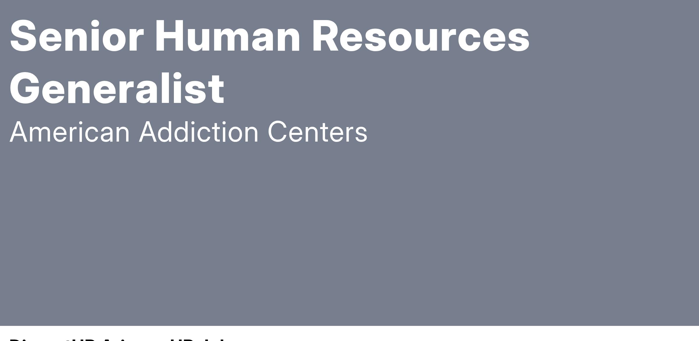 The Senior HR Generalist remotely will support the HR team at American Addiction Centers, providing key HR functions for the corporate office, including corporate, marketing, business development, and call center teams. This role is designed for an up-and-coming HR professional interested in growth, who will gain exposure to various HR areas, including employee relations, leave management, project support, change management, and administrative duties. This role will also provide coverage for divisional HR Business Partners (HRBP) as needed.