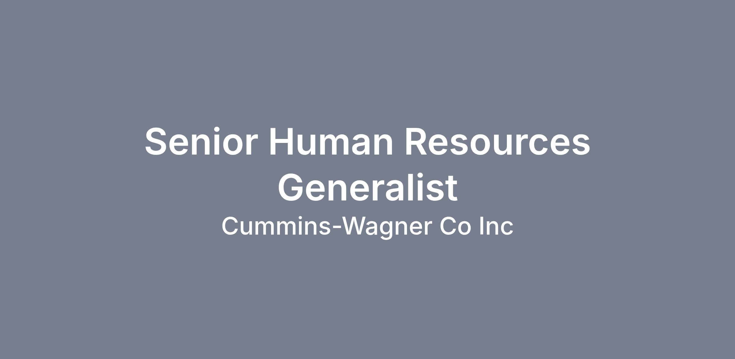 Job Overview The Senior Human Resources (“HR”) Generalist has overall responsibility for the HR function as it relates to all Cummins-Wagner (C-W) employees with primary ownership of the Cummins-Wagner payroll system (ADP Workforce Now). The Senior Generalist will also assist in all other HR subject areas as needed. This Senior Generalist's role serves as the primary point of contact for all payroll issues and acts as the liaison between Cummins-Wagner and ADP.