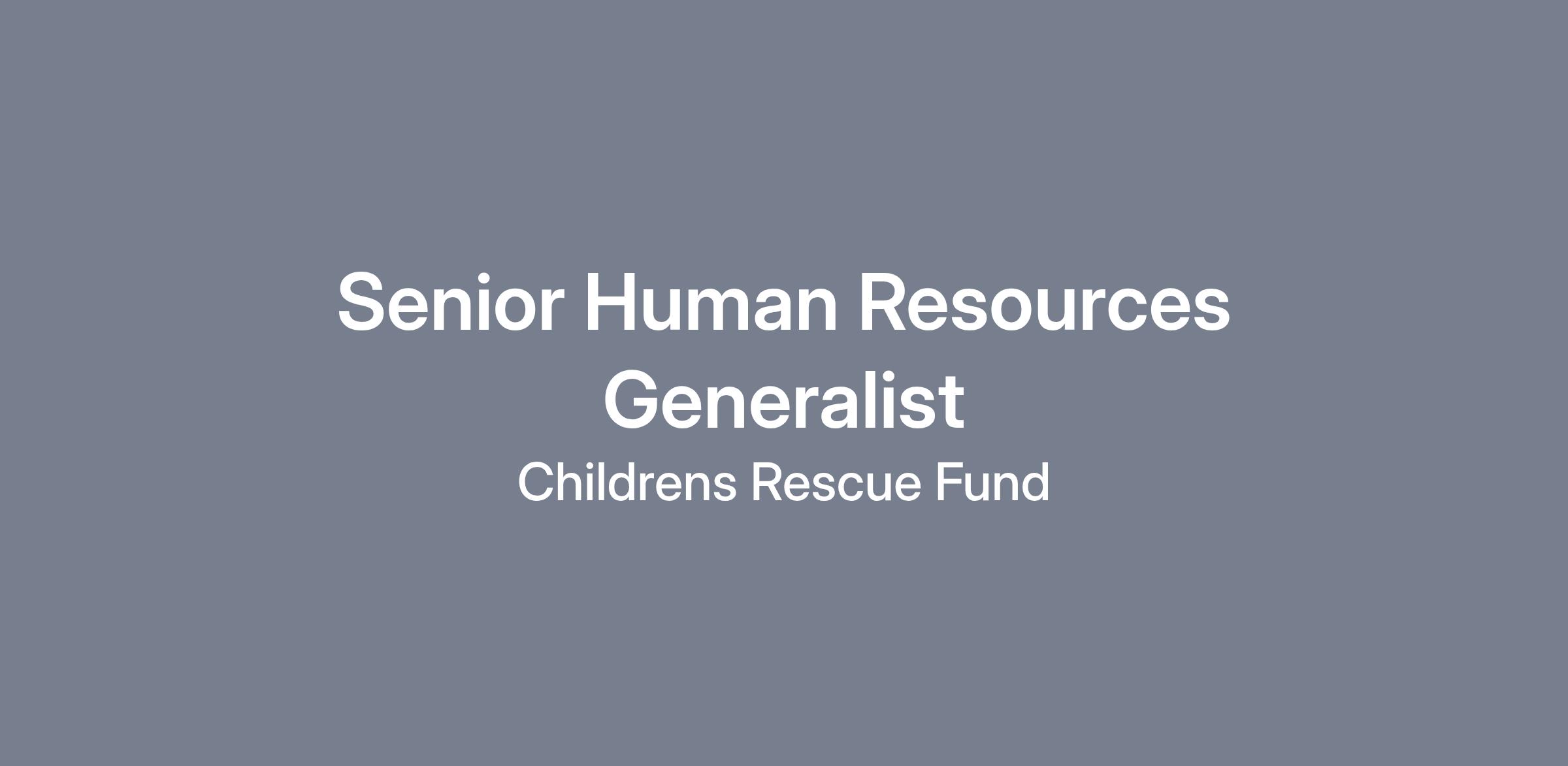 EEO Statement – Children’s Rescue Fund is an Equal Opportunity Employer. We celebrate diversity and are committed to creating an inclusive environment for all employees. All qualified applicants will receive consideration for employment without regard to race, color, religion, sex, national origin, disability, gender identity, sexual orientation or protected veteran status.