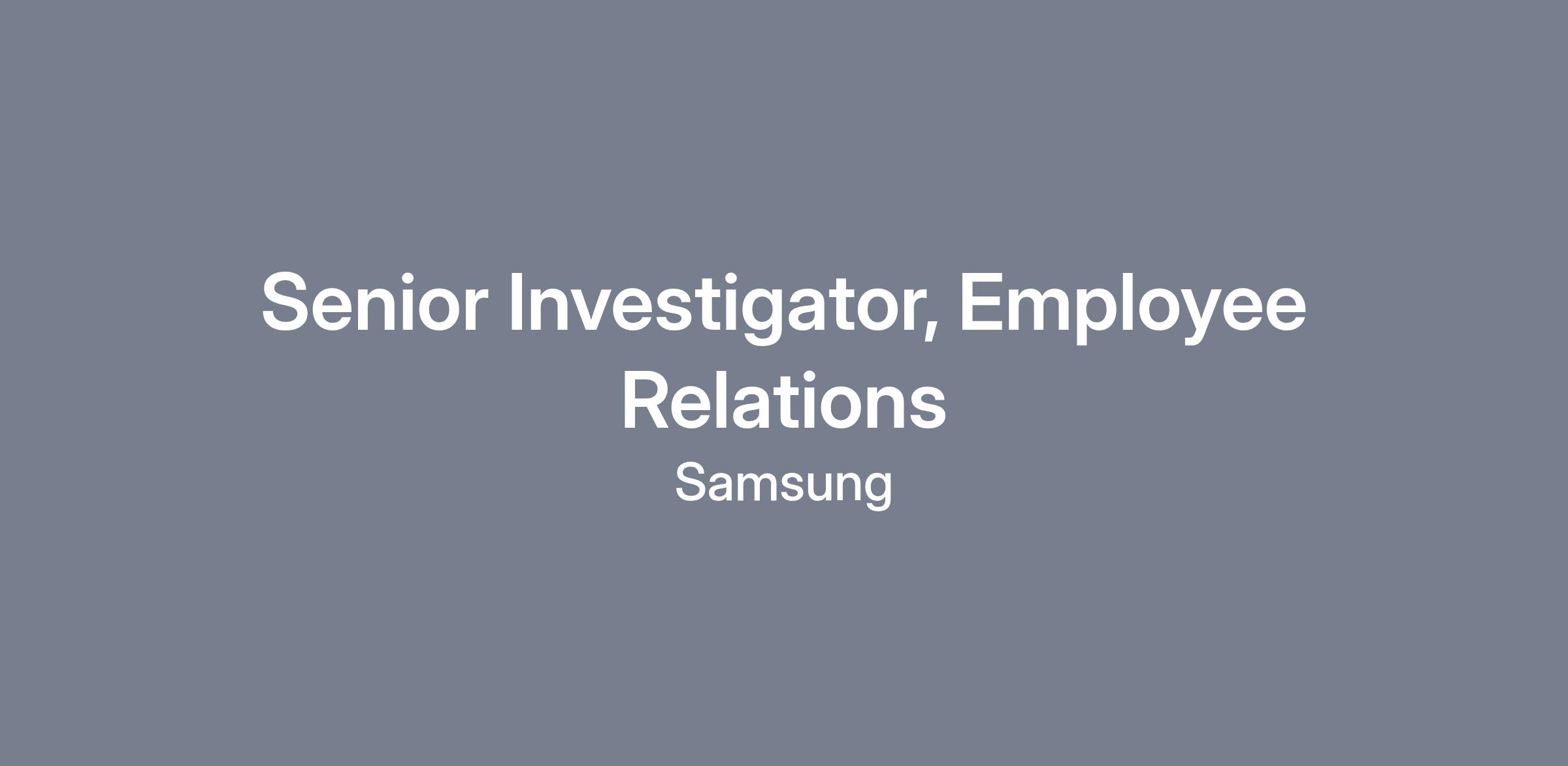 The Senior Investigator, Employment Practices role will also serve as a regional advisor to our affiliates providing direct support and counseling on their employee relations and investigation needs and acting as a center of excellence to share resources and best practices. This role will also facilitate training programs and host roundtable discussions for Human Resources leaders at Samsung affiliates to provide support and build cohesive collaboration across the region.