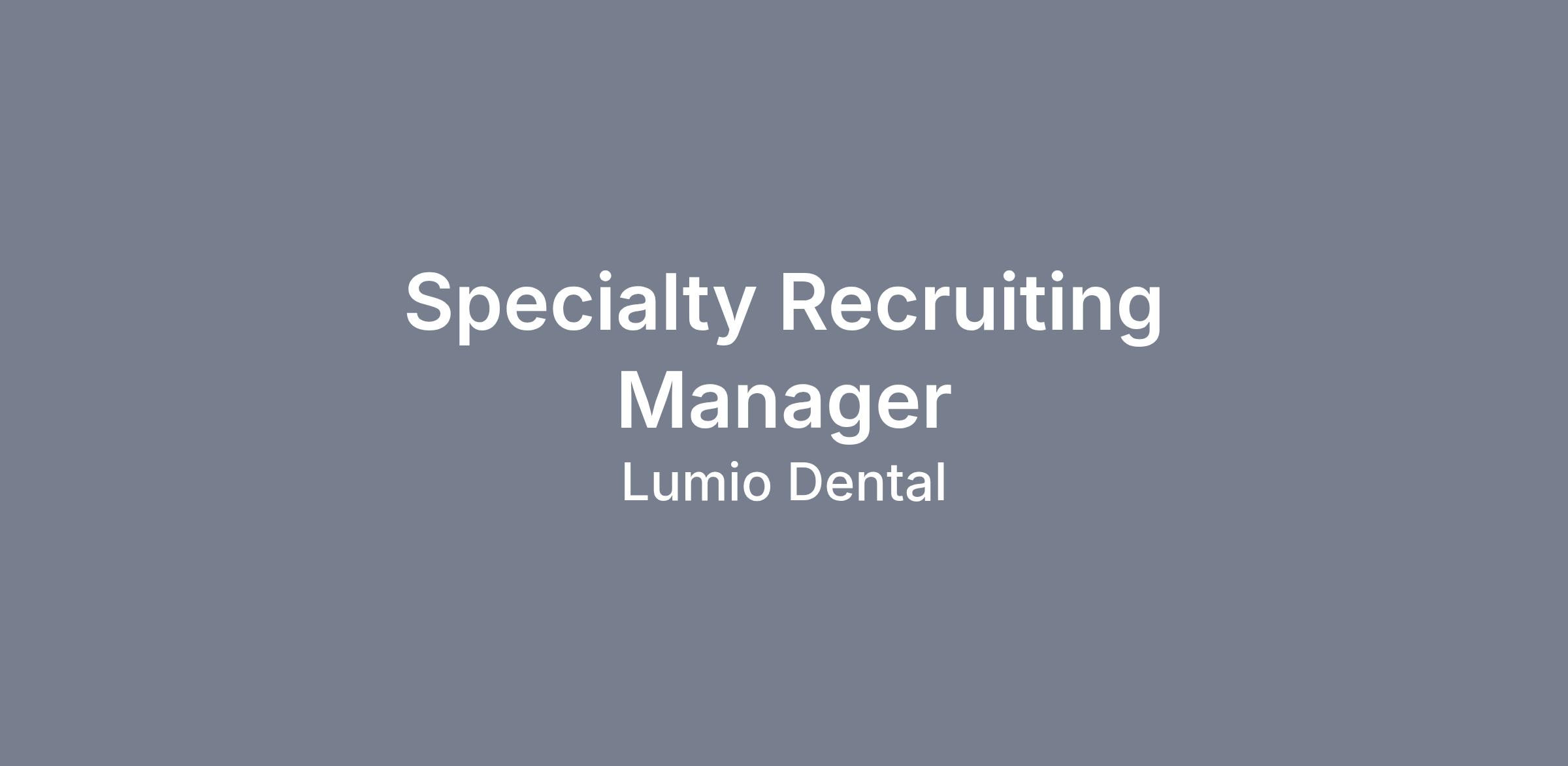 As a Specialty Recruiting Manager, you will be a part of Lumio Dental's Recruiting Team.