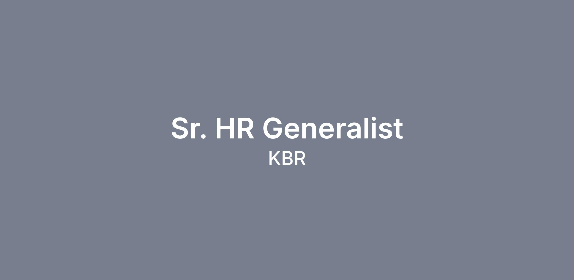 Sr. HR GeneralistBelong, Connect, Grow, with KBR! - At KBR, we are passionate about our people and our Zero Harm culture. These inform all that we do and are at the heart of our commitment to, and ongoing journey toward being a People First company. That commitment is central to our team of team’s philosophy and fosters an environment where everyone can Belong, Connect and Grow. We Deliver – Together.