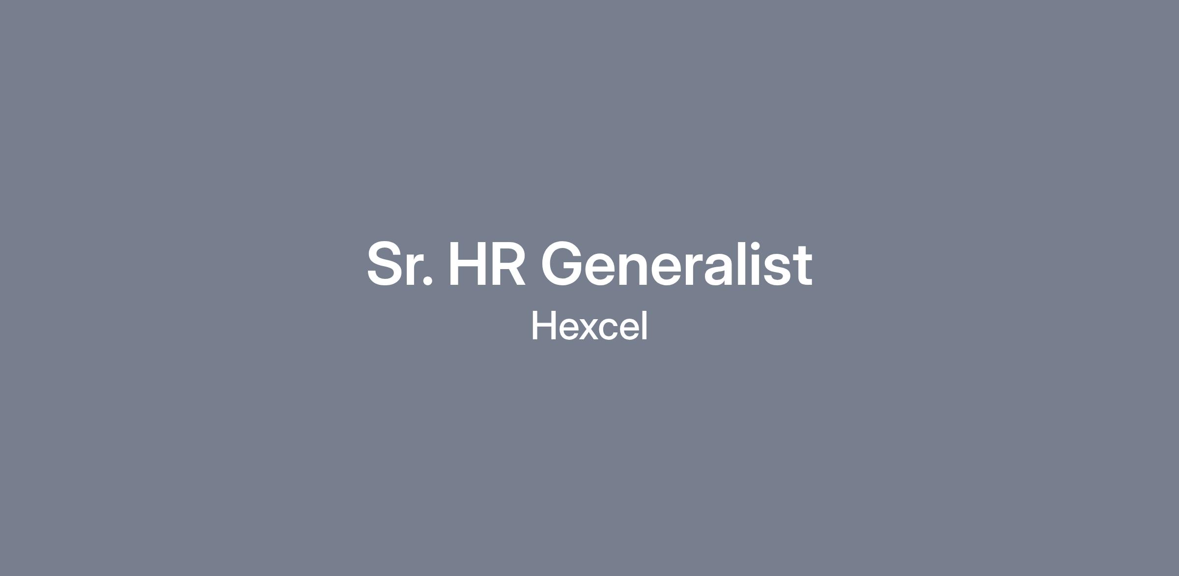 Hexcel is currently seeking a Senior Human Resources Generalist for our Salt Lake City, UT location.