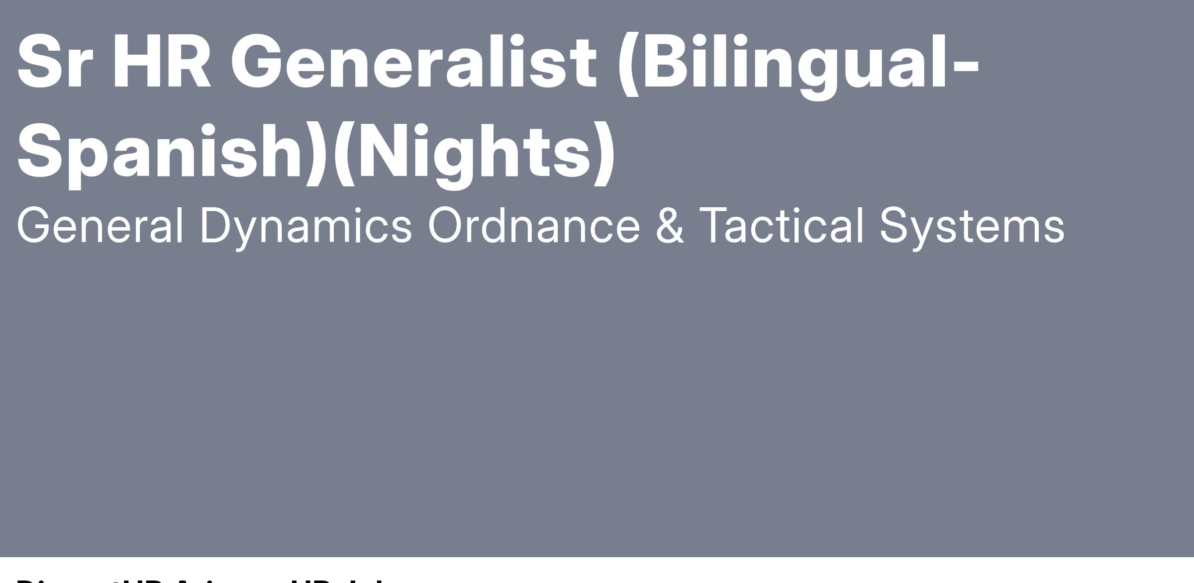 Sr HR Generalist (Bilingual-Spanish)(Nights)